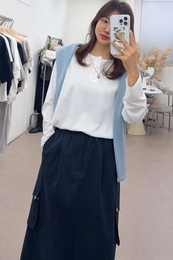 棉+聚酯 透氣舒適 滑順親膚 開釦變V領 彈性很大 L號友善
