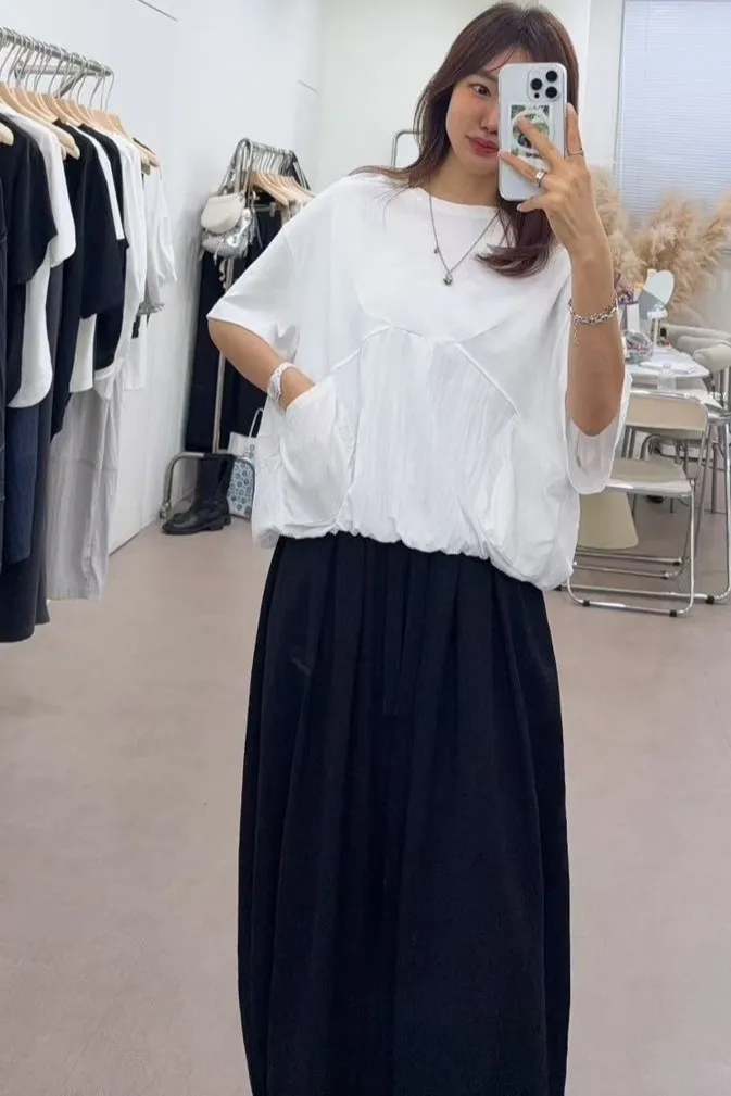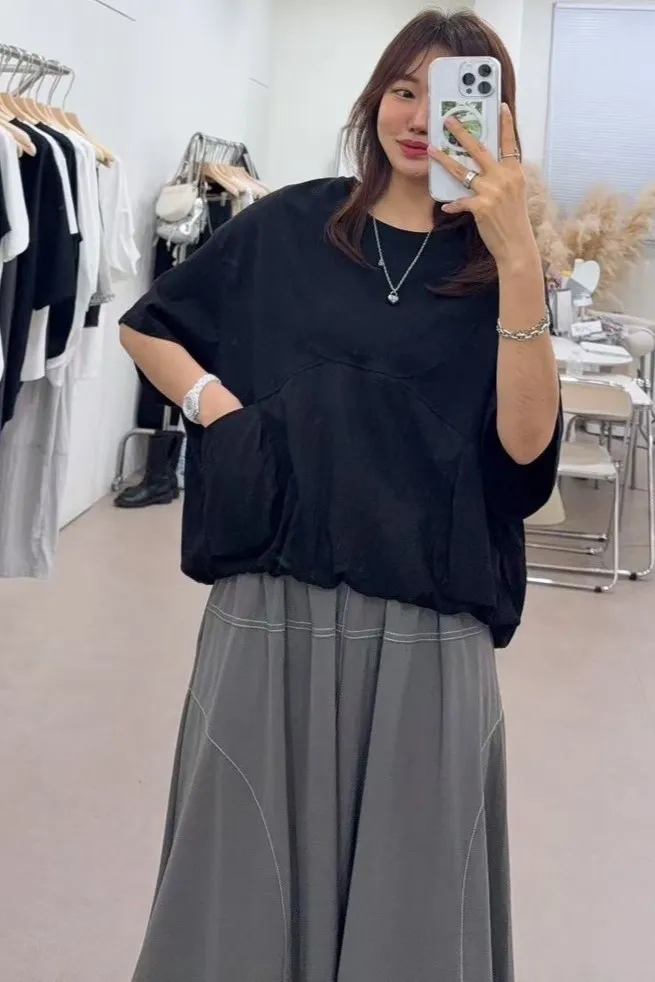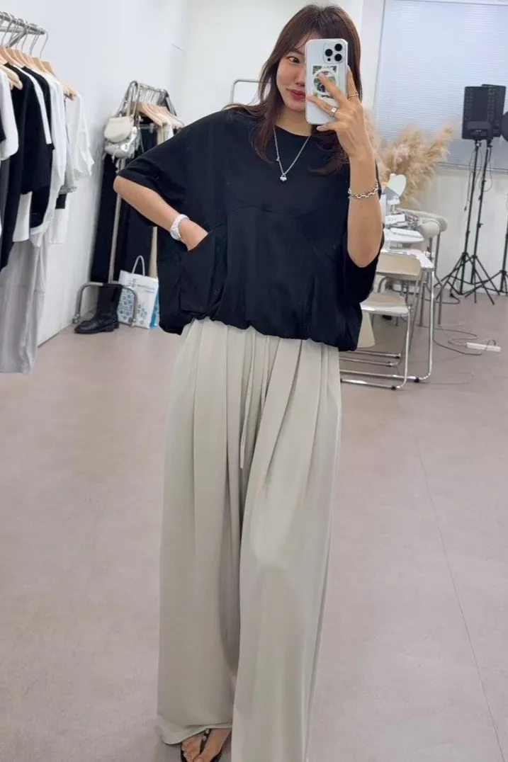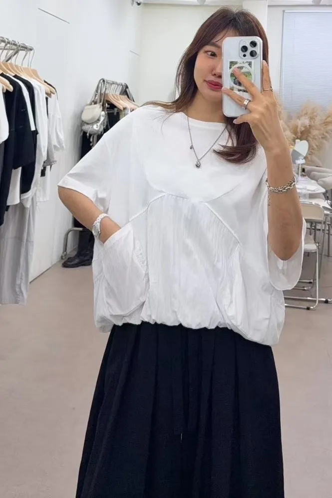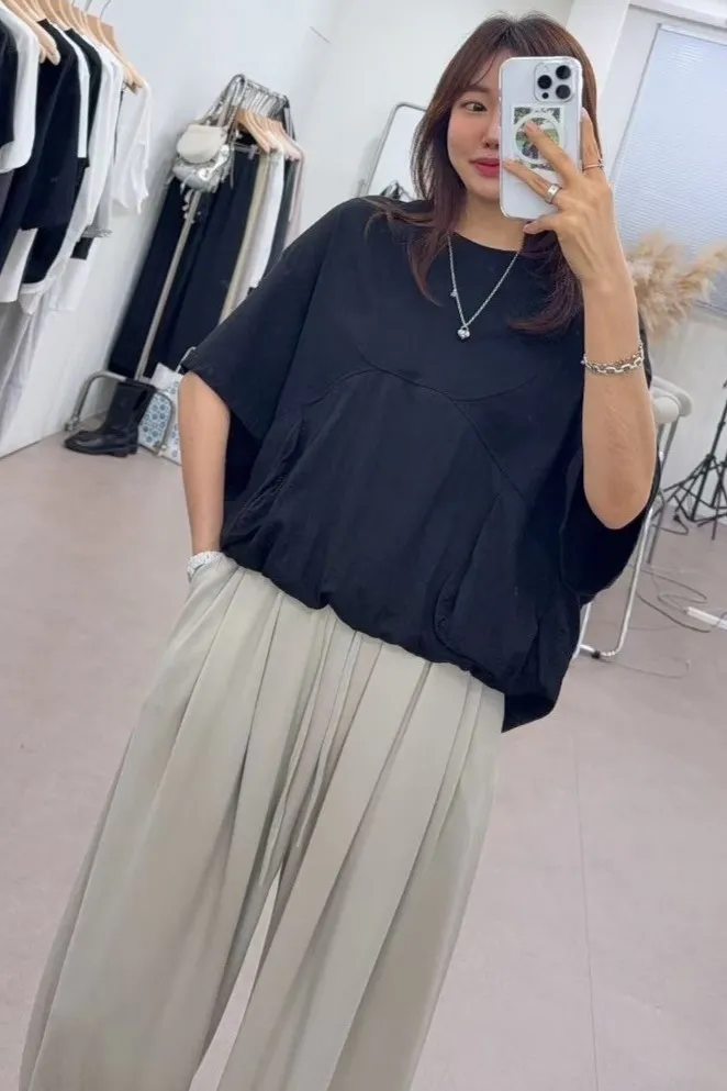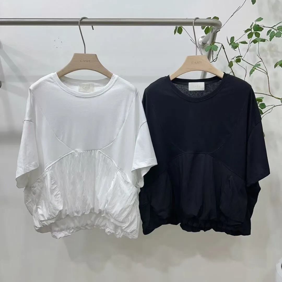 棉+尼龍 涼感透氣 飛鼠袖 胸寬舒適 下擺鬆緊 拼接立體車線