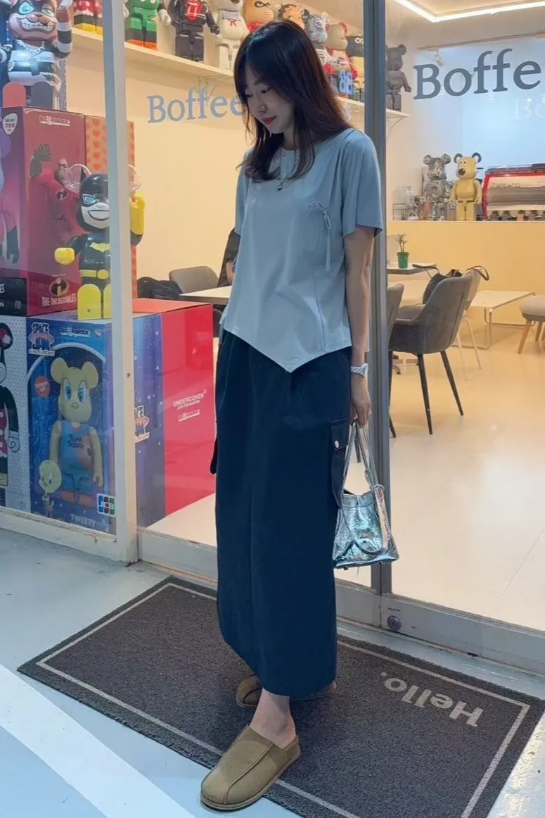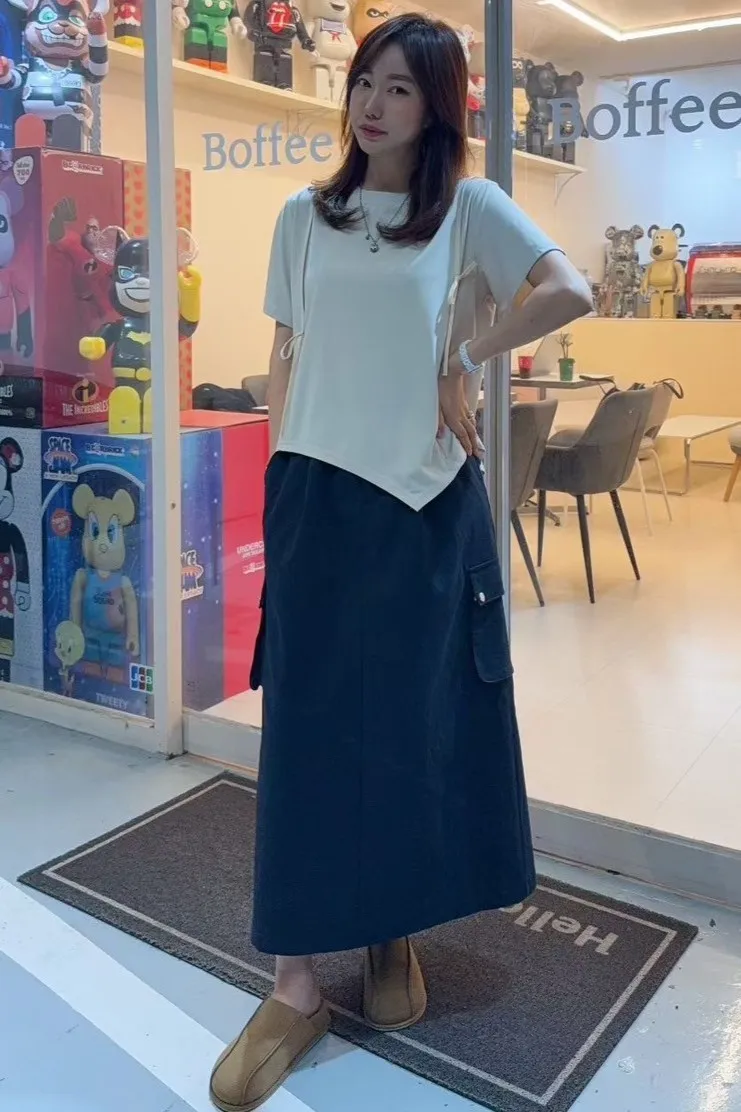 棉+聚酯+彈力 輕盈不易皺 全腰鬆緊 有口袋 有內裡 L號友善 後開叉