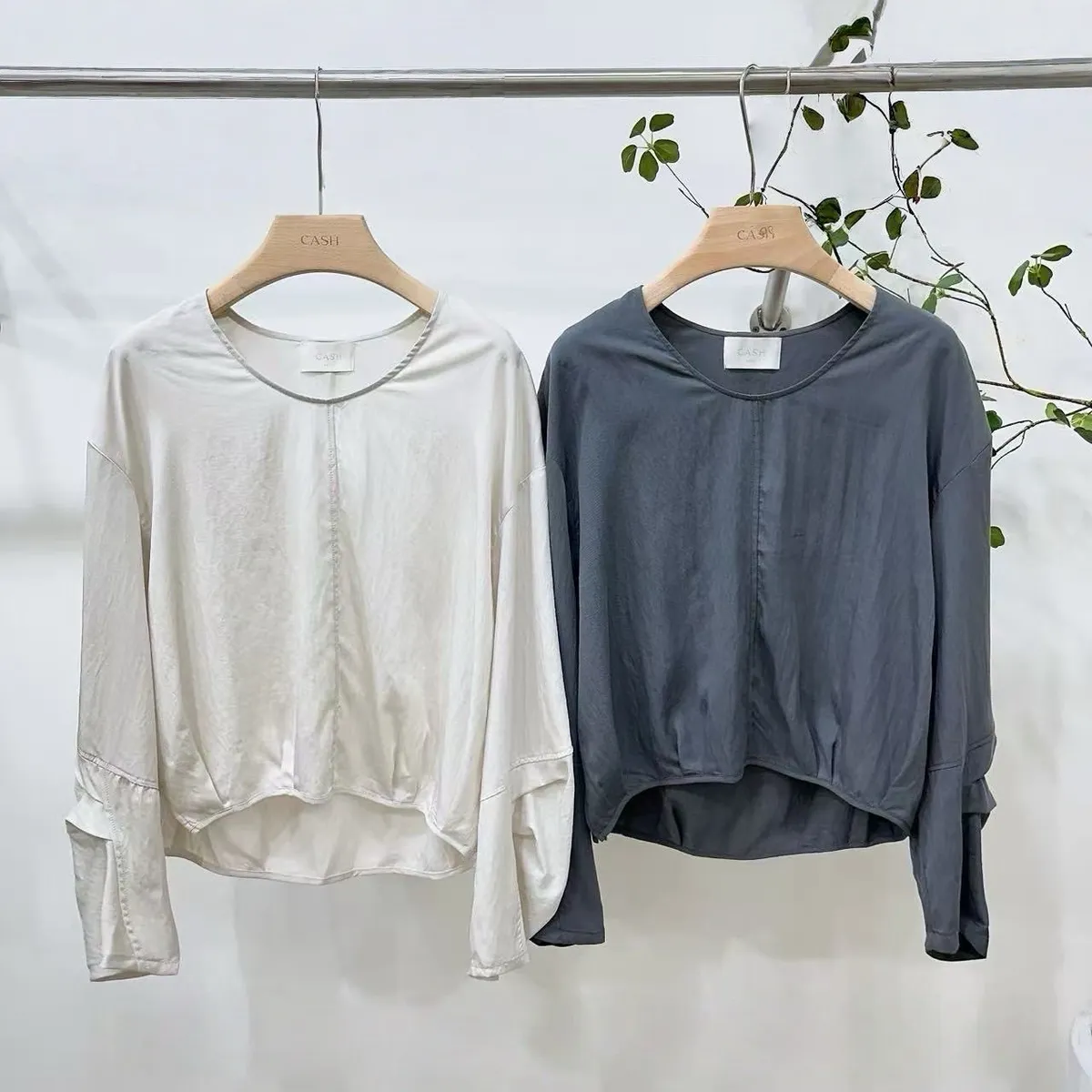 天絲90%+尼龍 立體設計手袖 微光澤 立體下擺 側開叉 後頸扣環