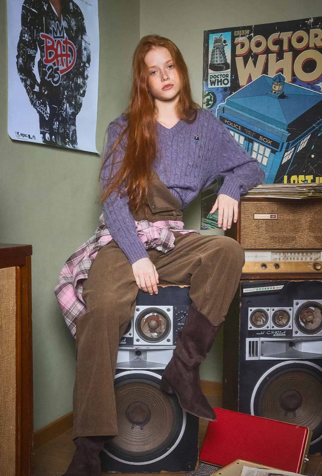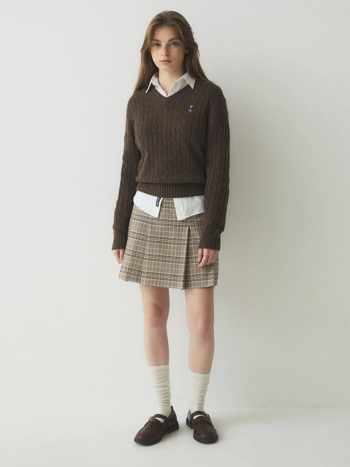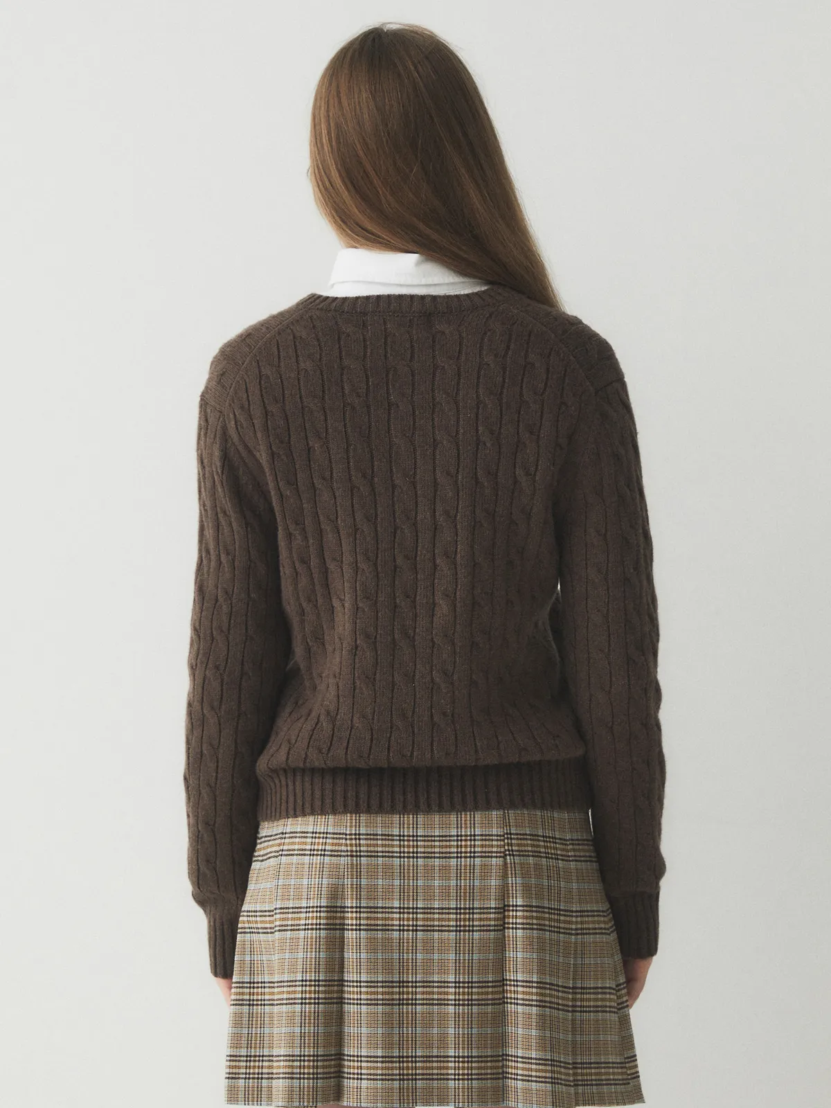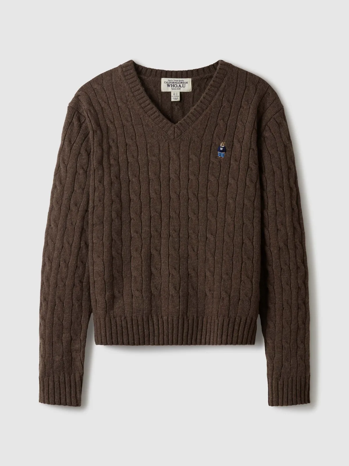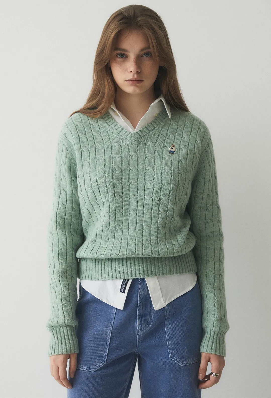 WHO_091刺繡熊熊麻花V領針織衫(原BS274) 綠 紫 咖 S M 官網價$990 線上價$960