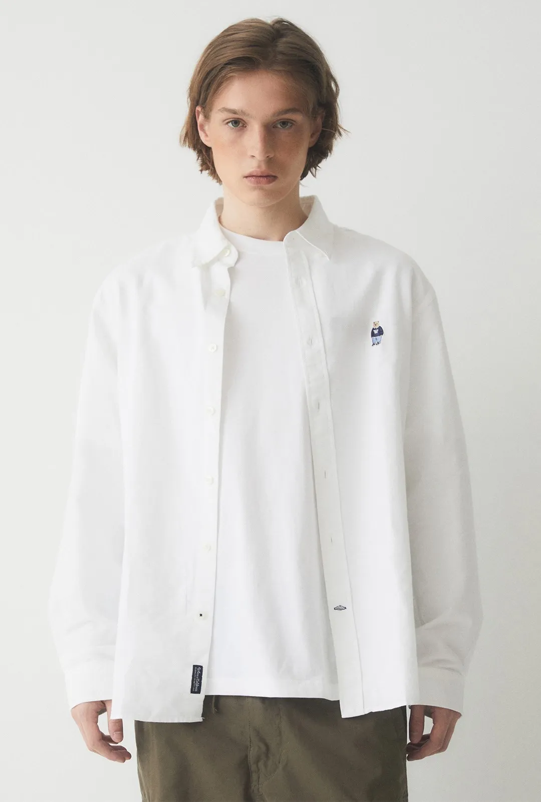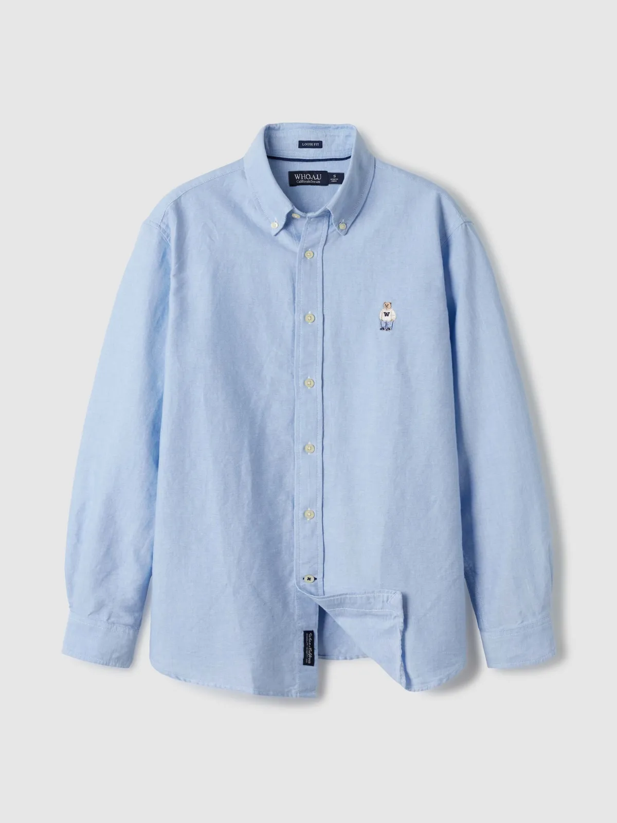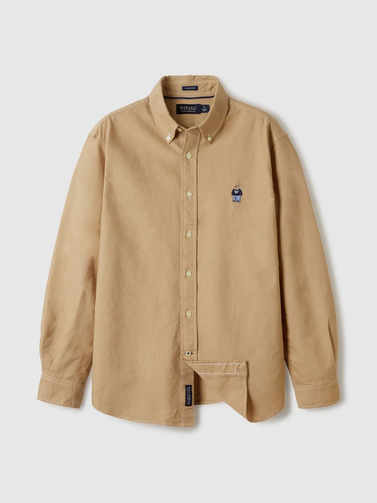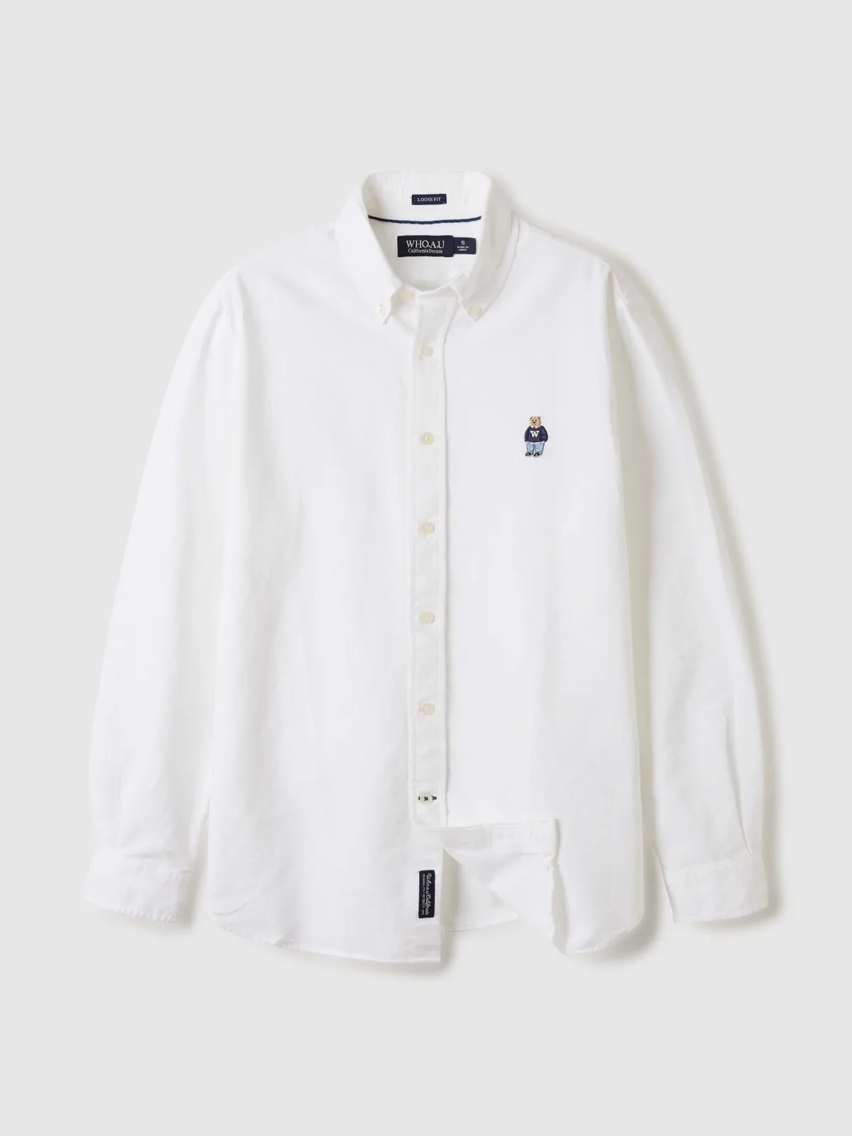 WHO_098刺繡熊熊長袖襯衫(原BS281) 白 藍 奶茶 S M L 官網價$1150 線上價$1120