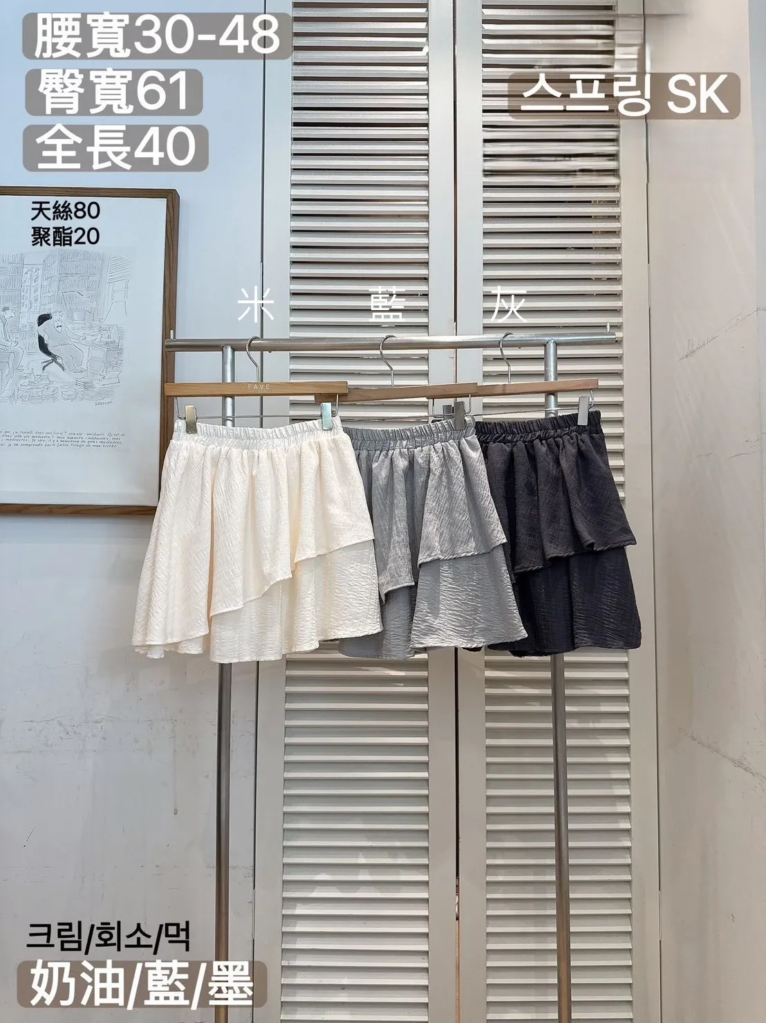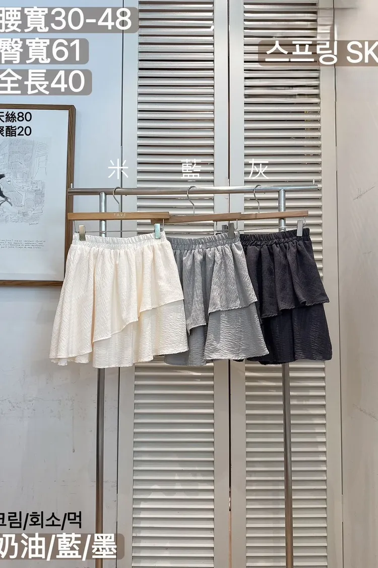天絲80%+聚酯 親膚舒適 雙層裙擺 全腰鬆緊 是褲裙 無口袋