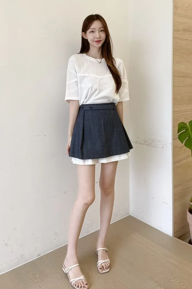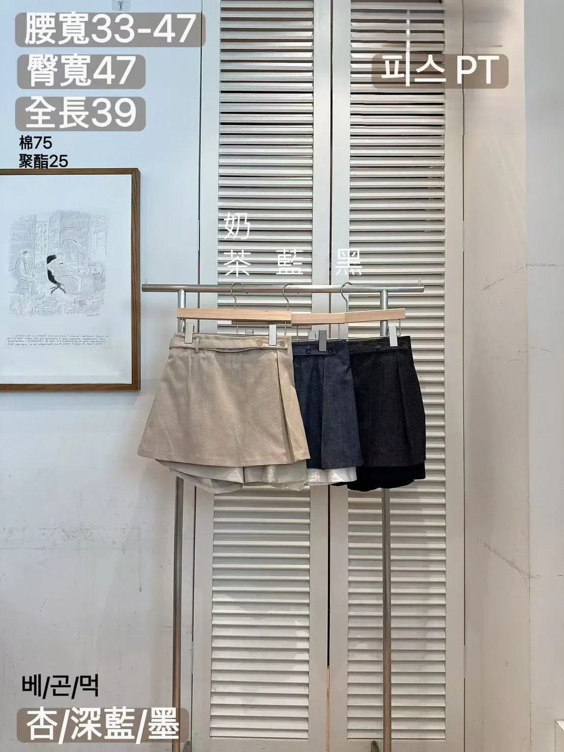 棉+聚酯 顯瘦Aline 後腰鬆緊 尺寸友善 緞面內裡 是褲裙