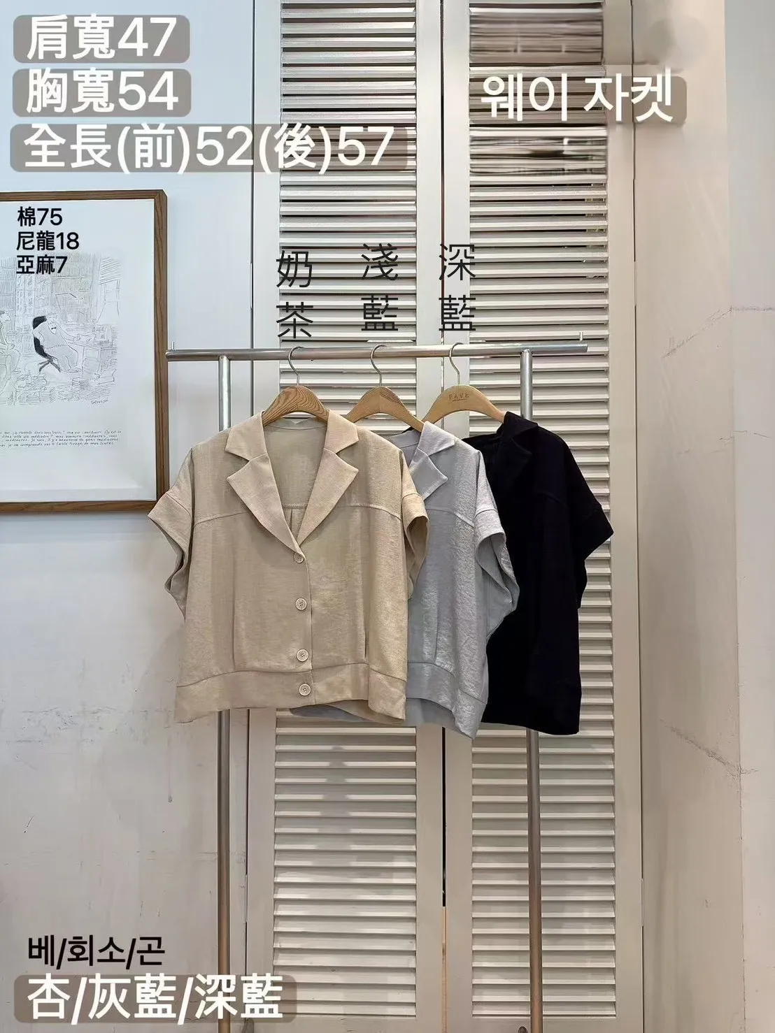 棉75%+亞麻7%+尼龍 輕盈薄款 可上衣可外套 寬鬆空間 短版好比例
