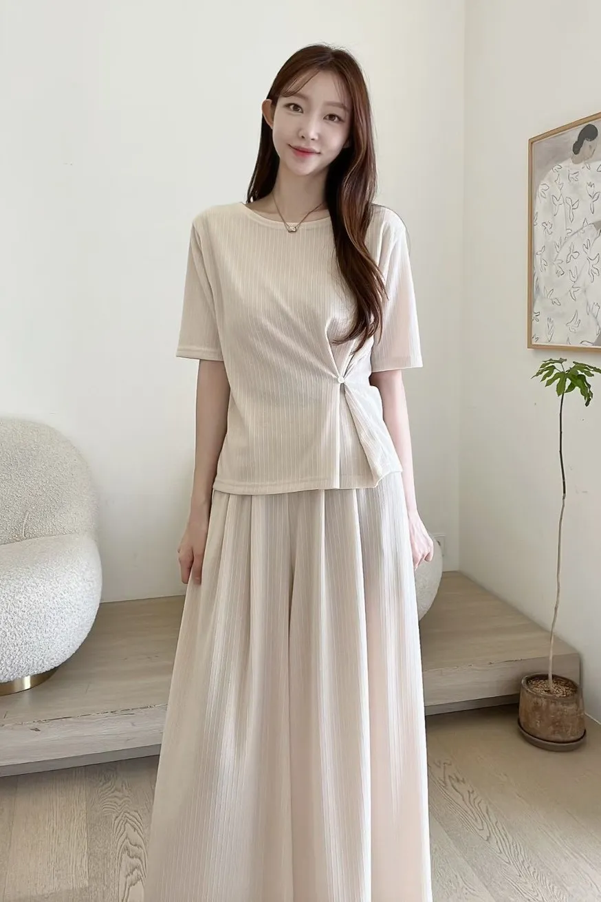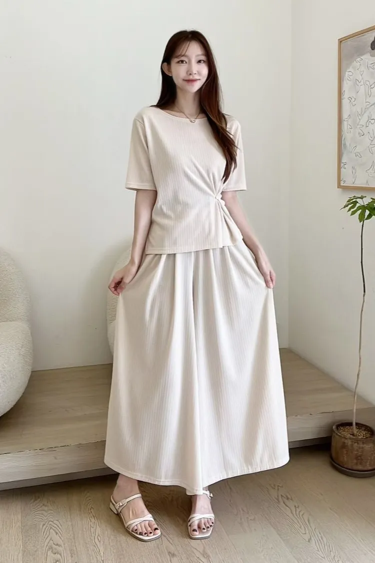 人造絲+聚酯 輕盈薄款 親膚有彈性 側腰雙釦調節 空間寬鬆