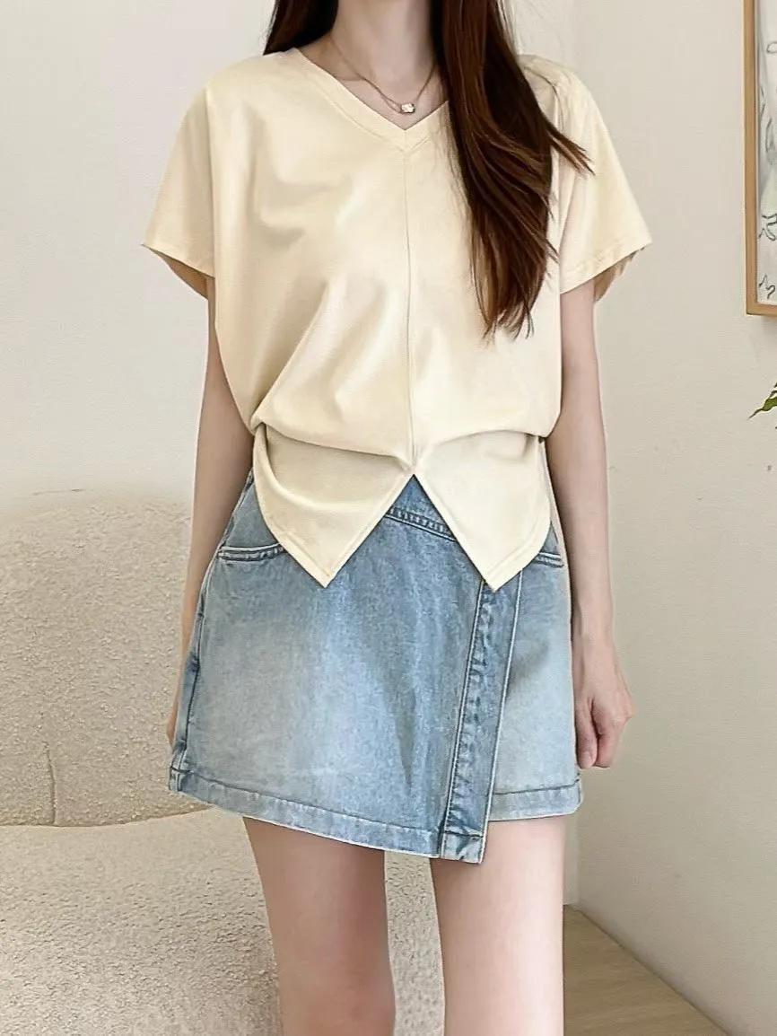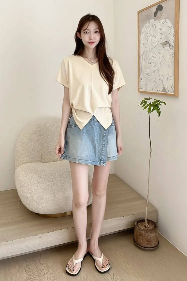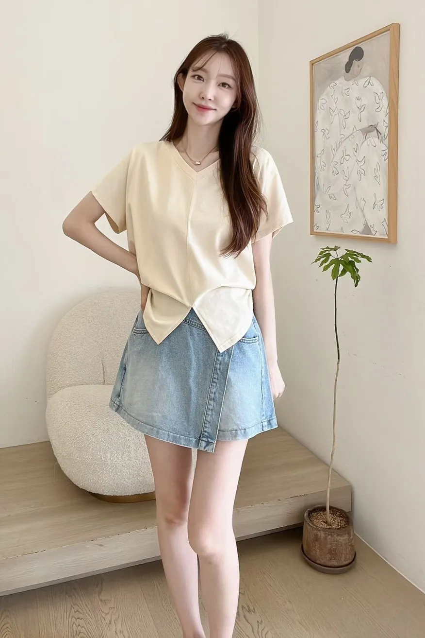 日本棉+涼感纖維+彈力 透氣舒適 前V領後圓領 下擺開叉 可兩面穿