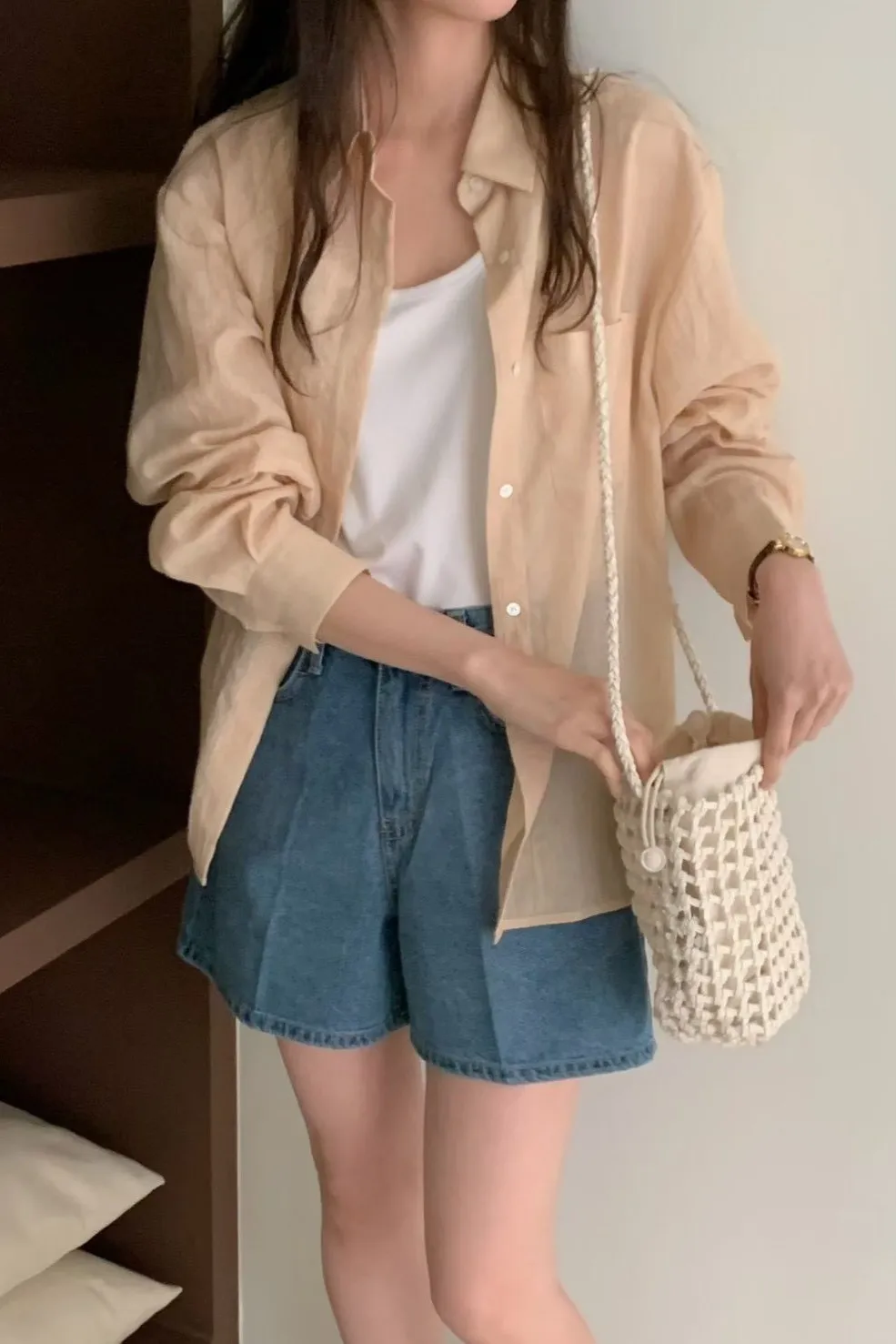 棉 非常薄款 釦鍊穿脫 自然挺度 有口袋 滑順觸感 適合夏天