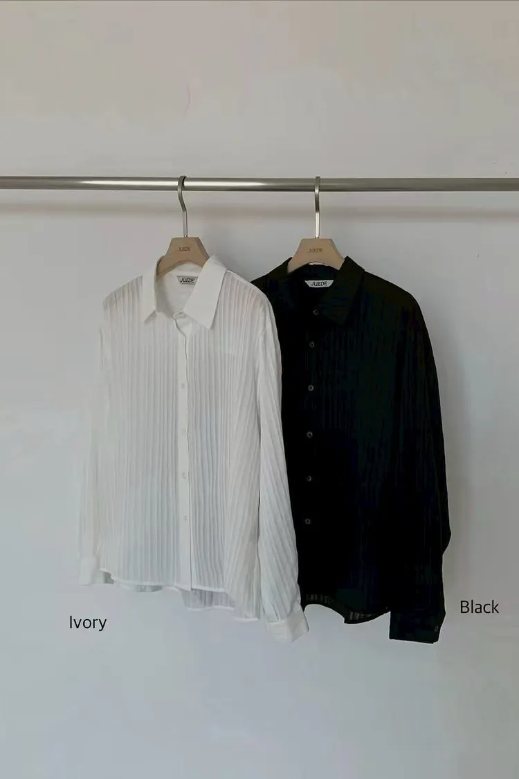 棉 柔軟面料 細緻隱約條紋 貝殼釦 不易皺