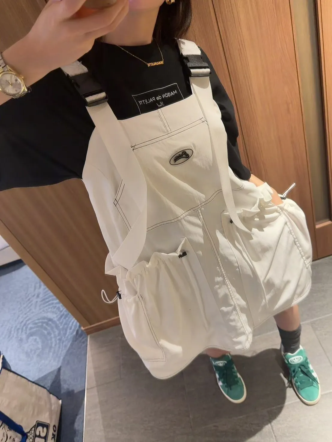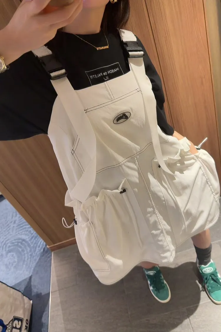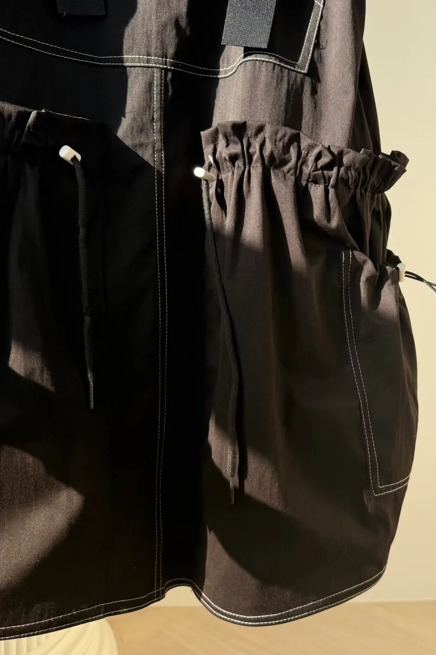 聚酯+尼龍 後拉鍊穿脫 有口袋 細腰抽繩 肩帶可調 XL友善