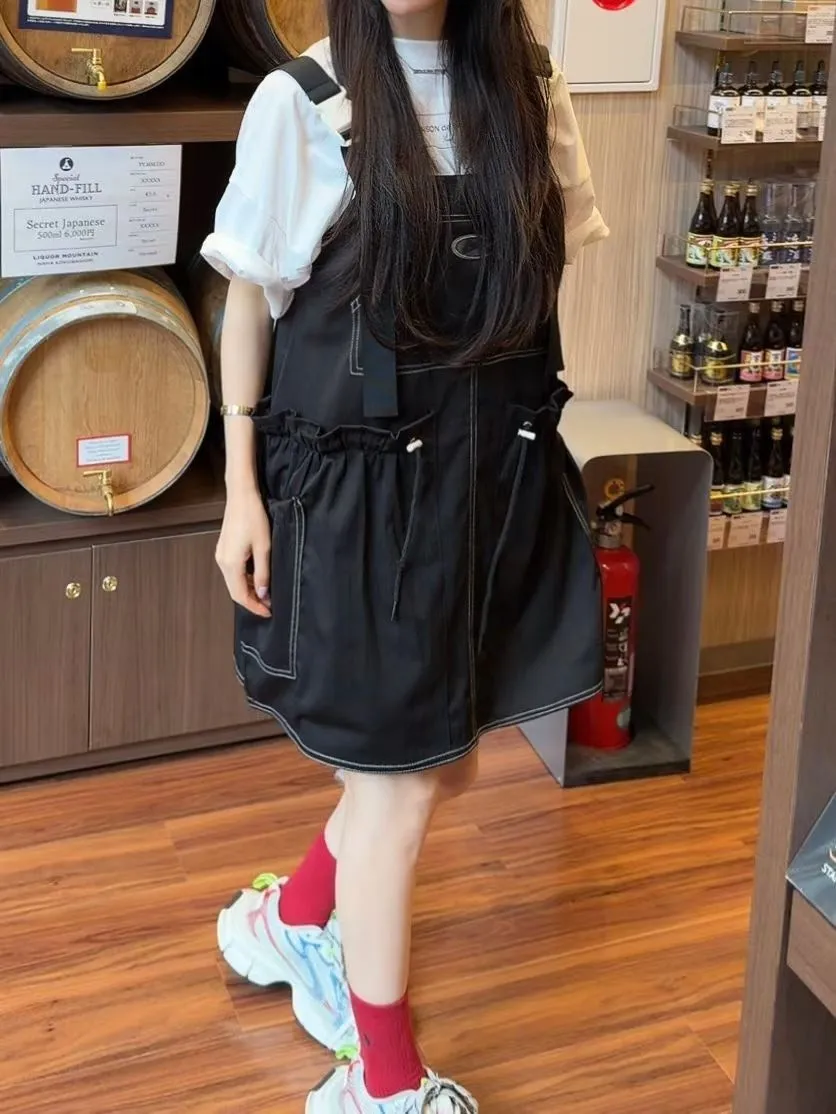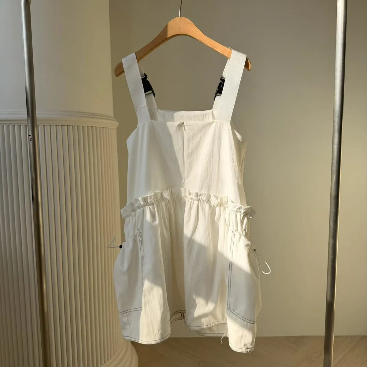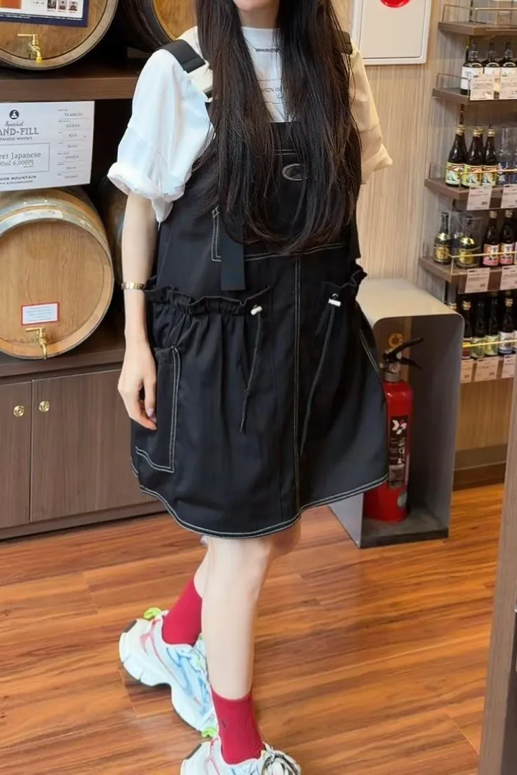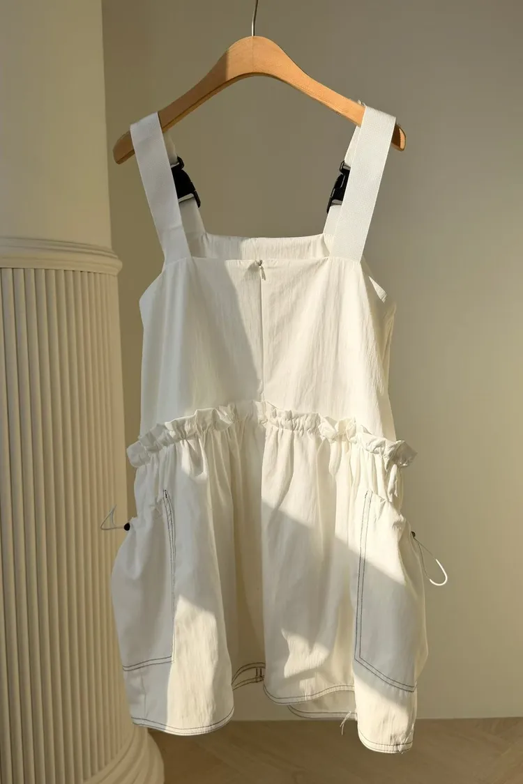 聚酯+尼龍 後拉鍊穿脫 有口袋 細腰抽繩 肩帶可調 XL友善