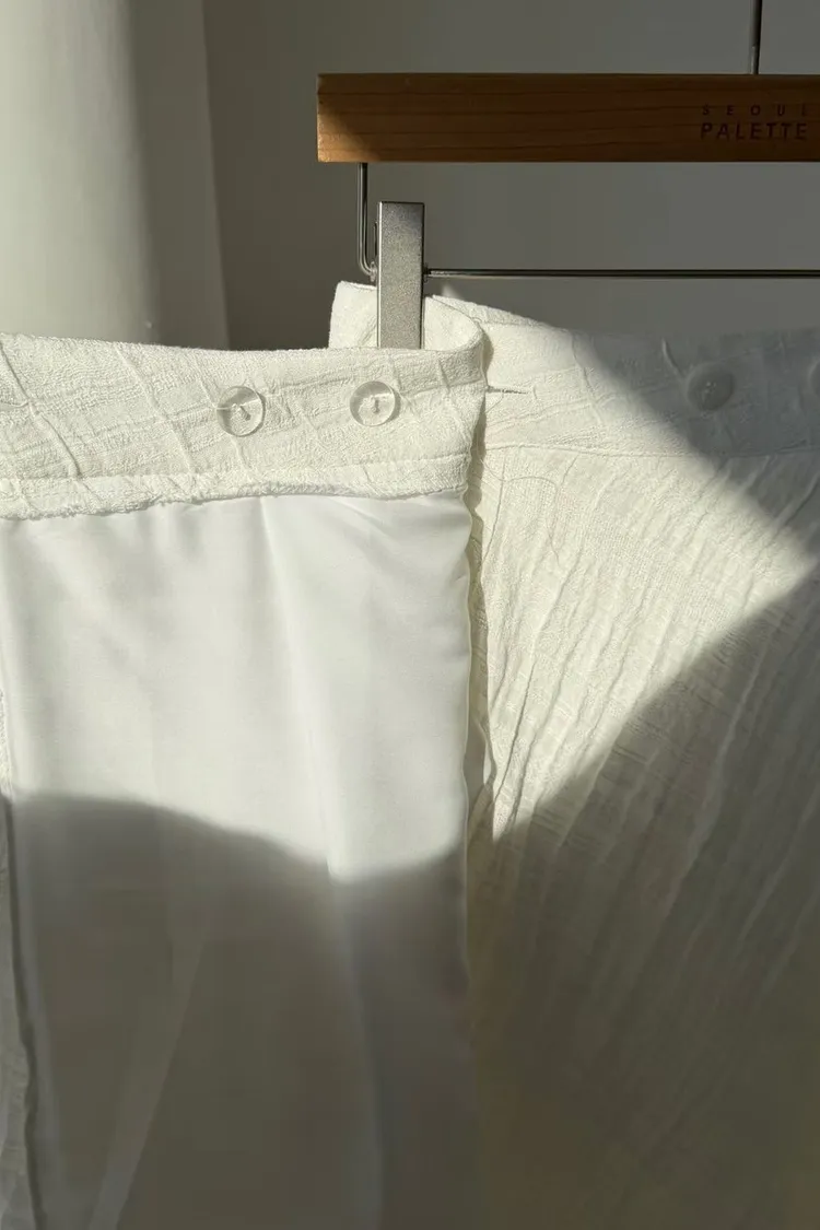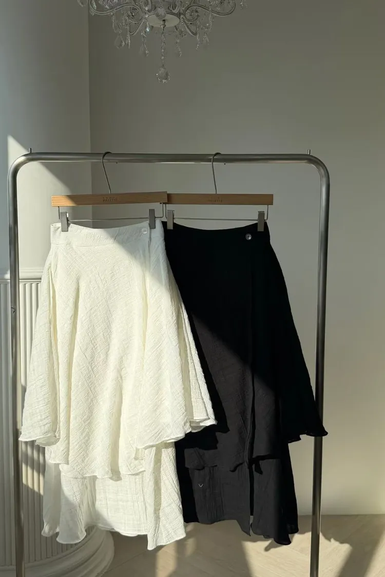 棉 腰鈕扣調節 薄款面料 一片裙式穿脫 雙層下擺