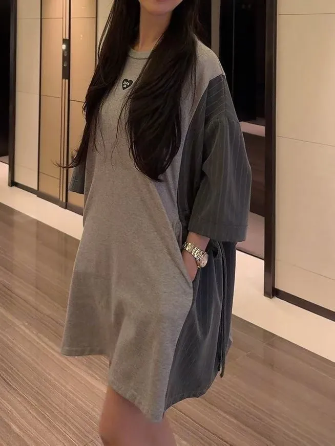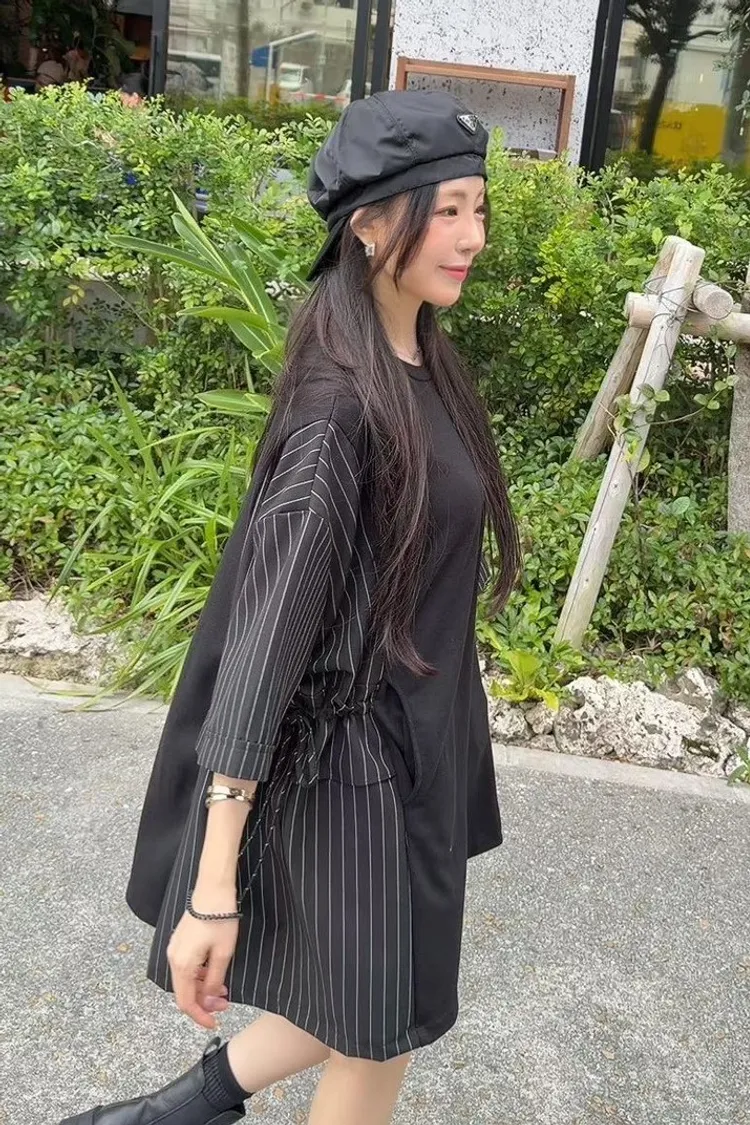 棉+聚酯+縲縈+彈力 涼感透氣 細側腰綁繩 拼接色彩