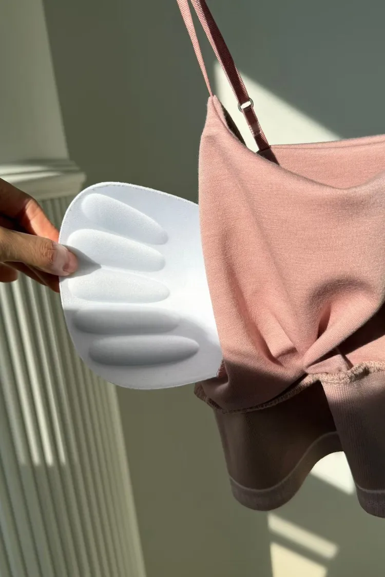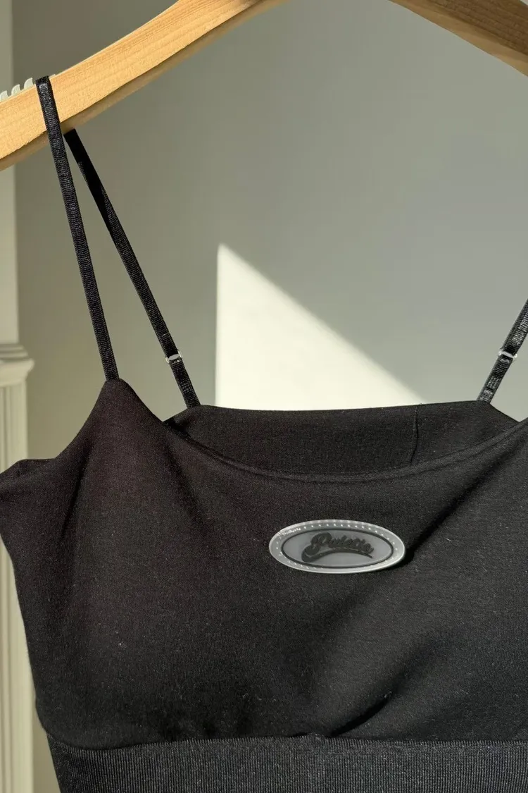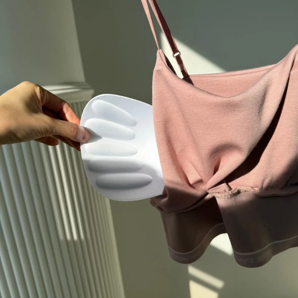 縲縈+聚酯+彈力 胸墊可拆 下擺有彈性 下擺有英文 肩帶可調