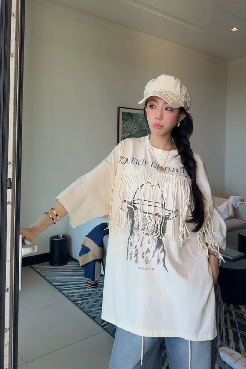 棉,立體流蘇 背後方塊標 側開叉 薄款面料 不撞款設計