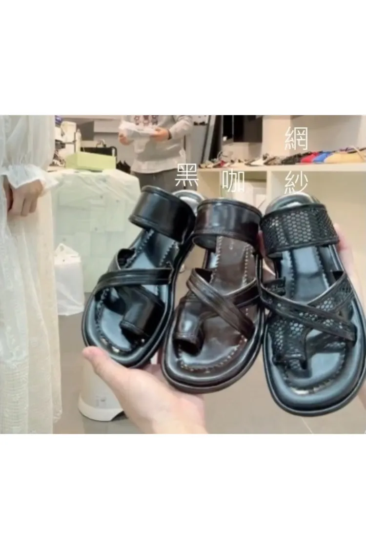 WY482時尚交叉拖鞋 咖 黑 網紗 225-250(有半號) 永恆甜甜價$980