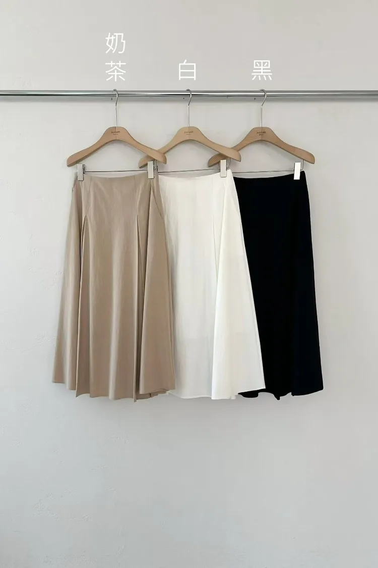 天絲72%+縲縈+彈力 側拉鍊 後腰鬆緊 自然傘擺 視覺細臀藏肉 有內裡