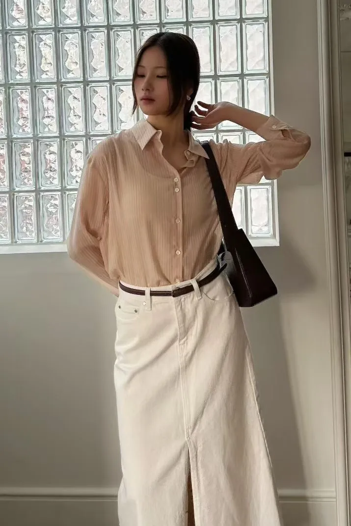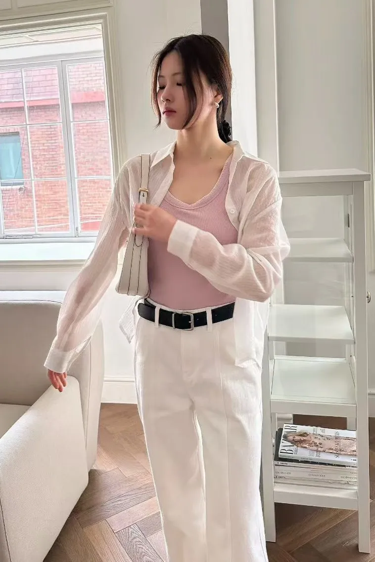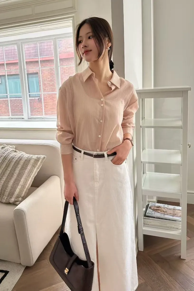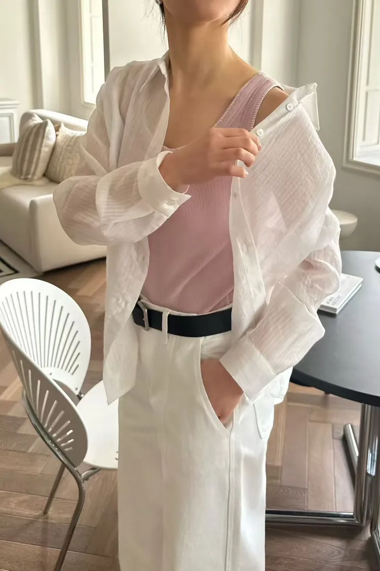 天絲+尼龍+聚酯 薄款輕盈 舒適透光 隱約直條紋 適合台灣天氣