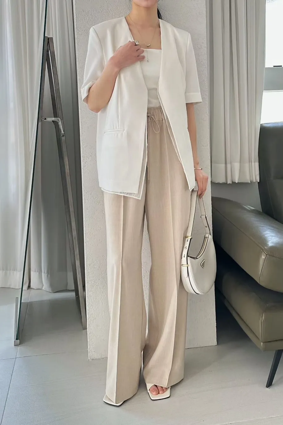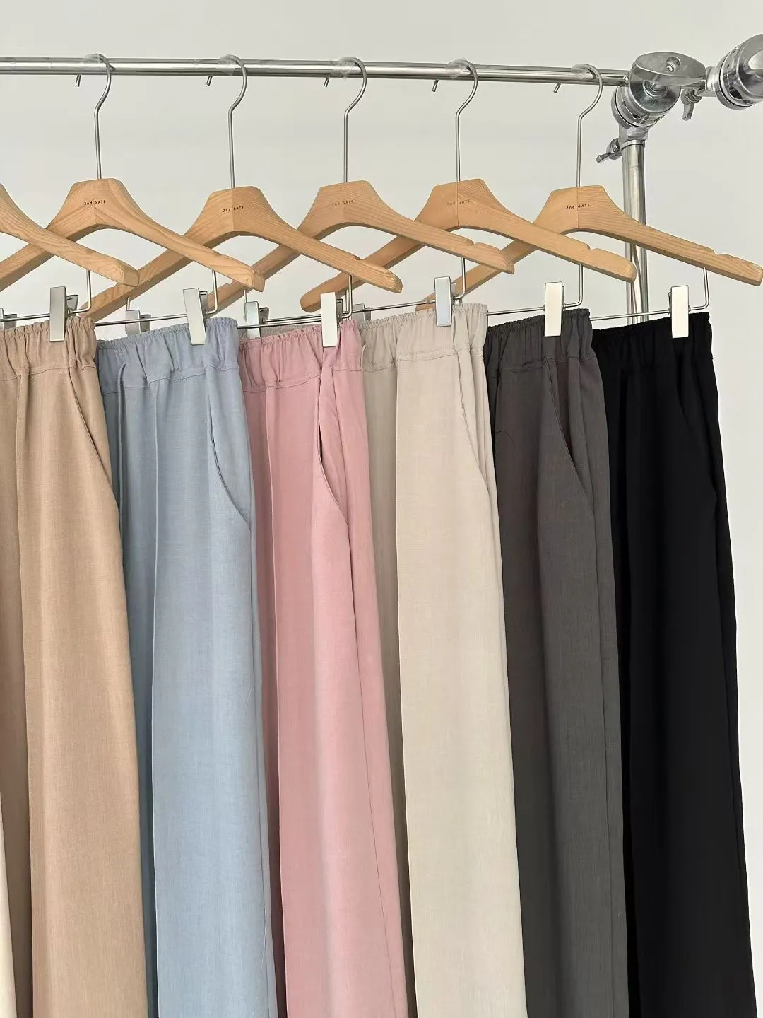 聚酯+縲縈+亞麻+彈力 透氣舒適 垂墜顯瘦 全腰鬆緊有抽繩 有口袋