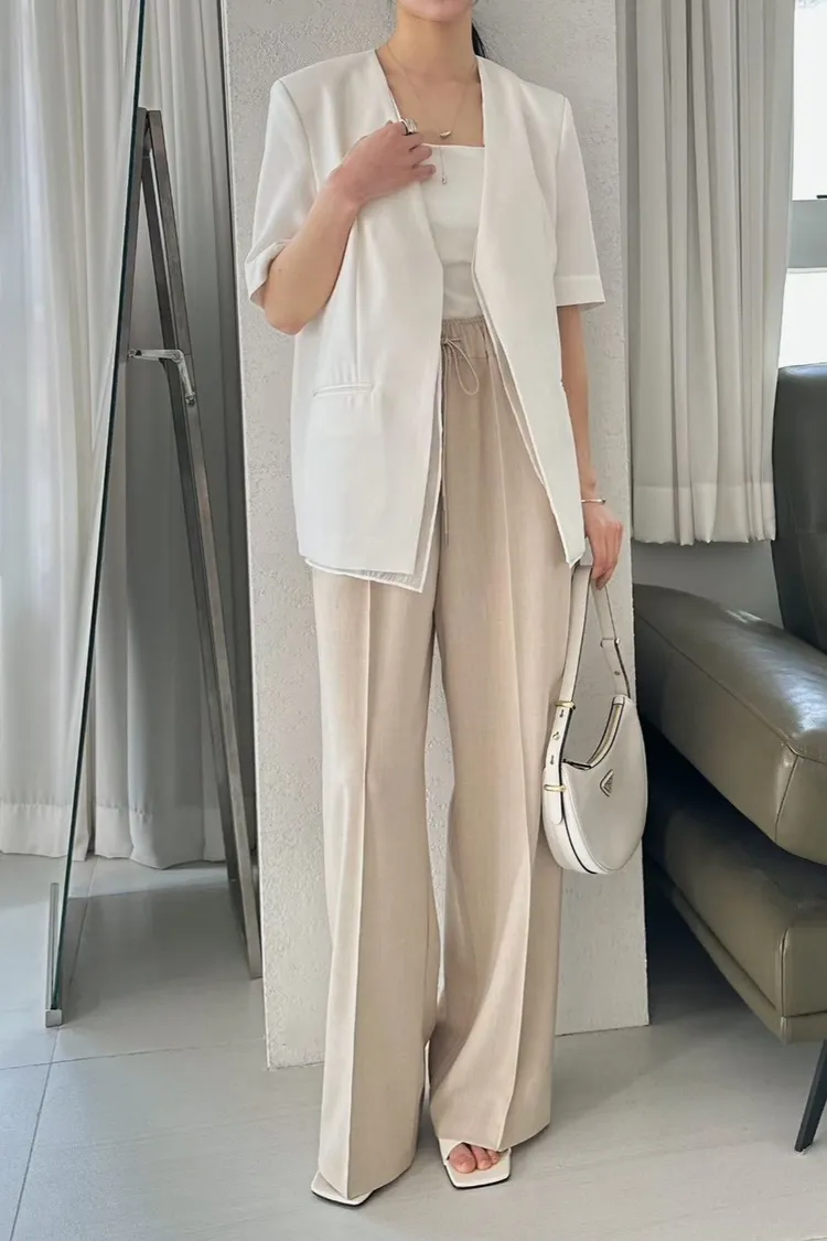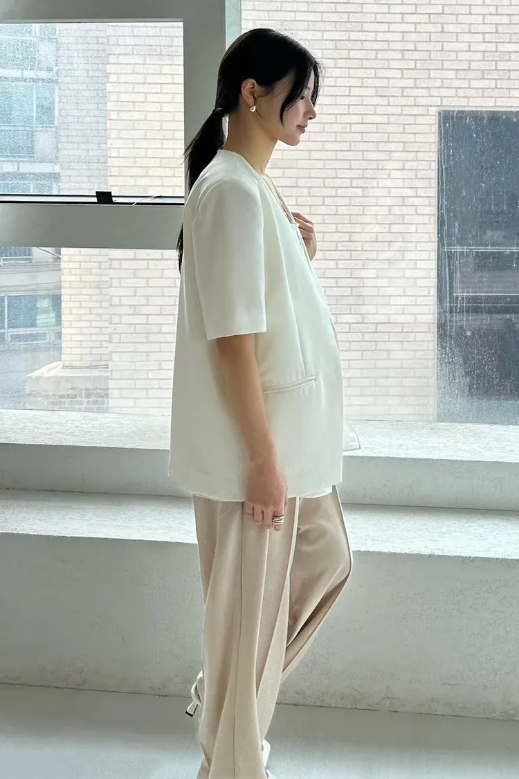 聚酯+亞麻41%+彈力 雙層面料 暗釦穿脫 薄款輕盈 有口袋