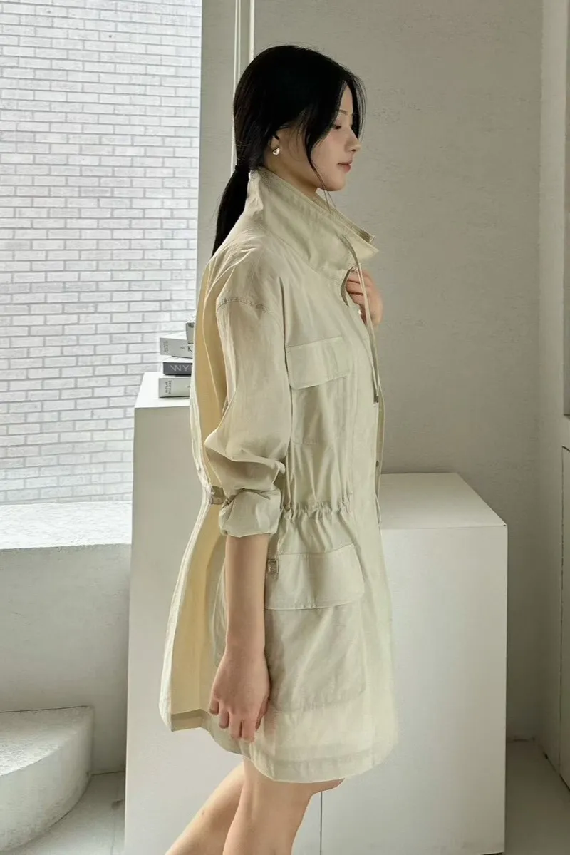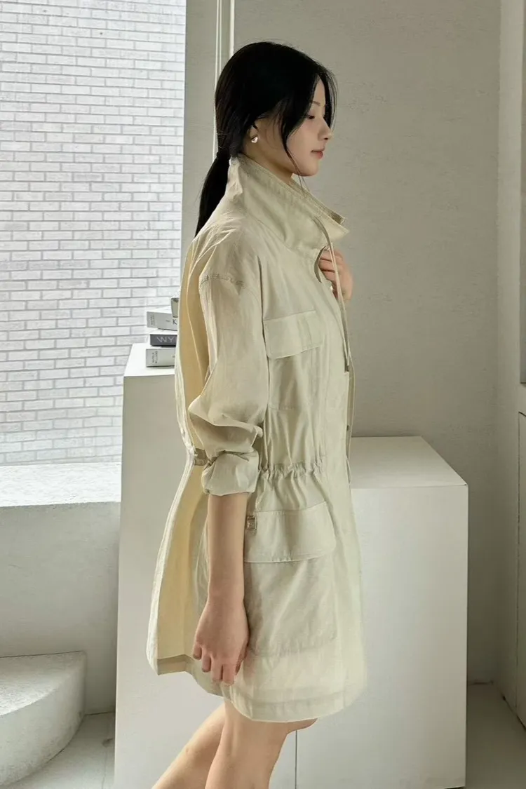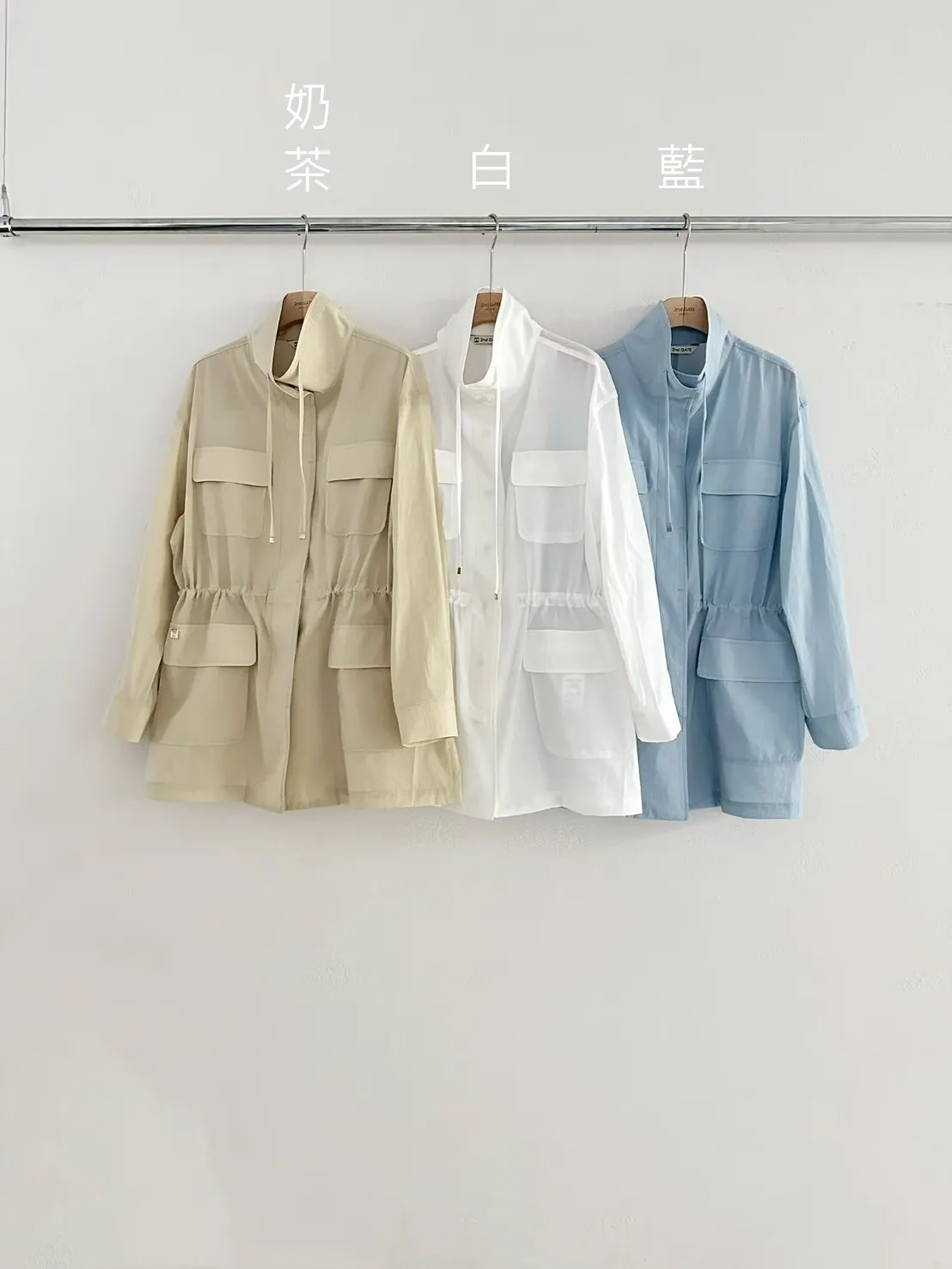 棉+尼龍 薄款面料 精緻縫線 釦子穿脫 系腰抽繩 四口袋設計感