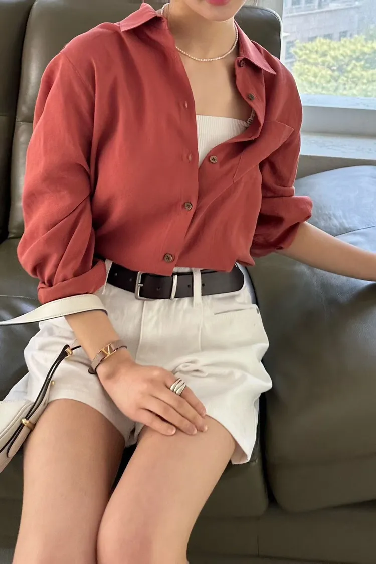 天絲60%+亞麻40% 高級色調 透氣舒適 可襯衫可外套 袖子雙釦