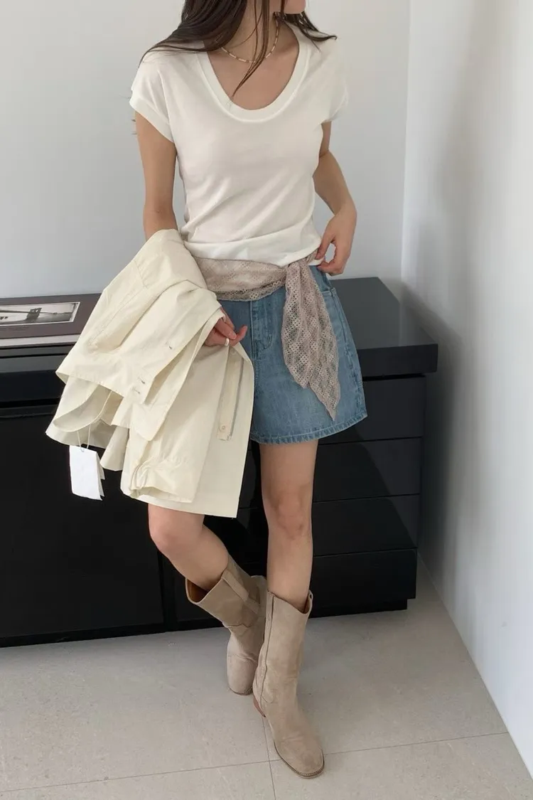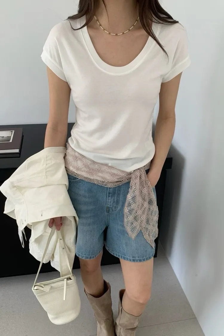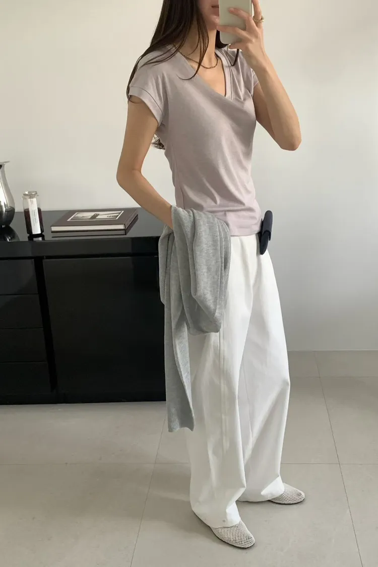 天絲70%+羊毛19%+彈力 薄款透氣 涼感舒適 寬U領版型 夏天超舒服
