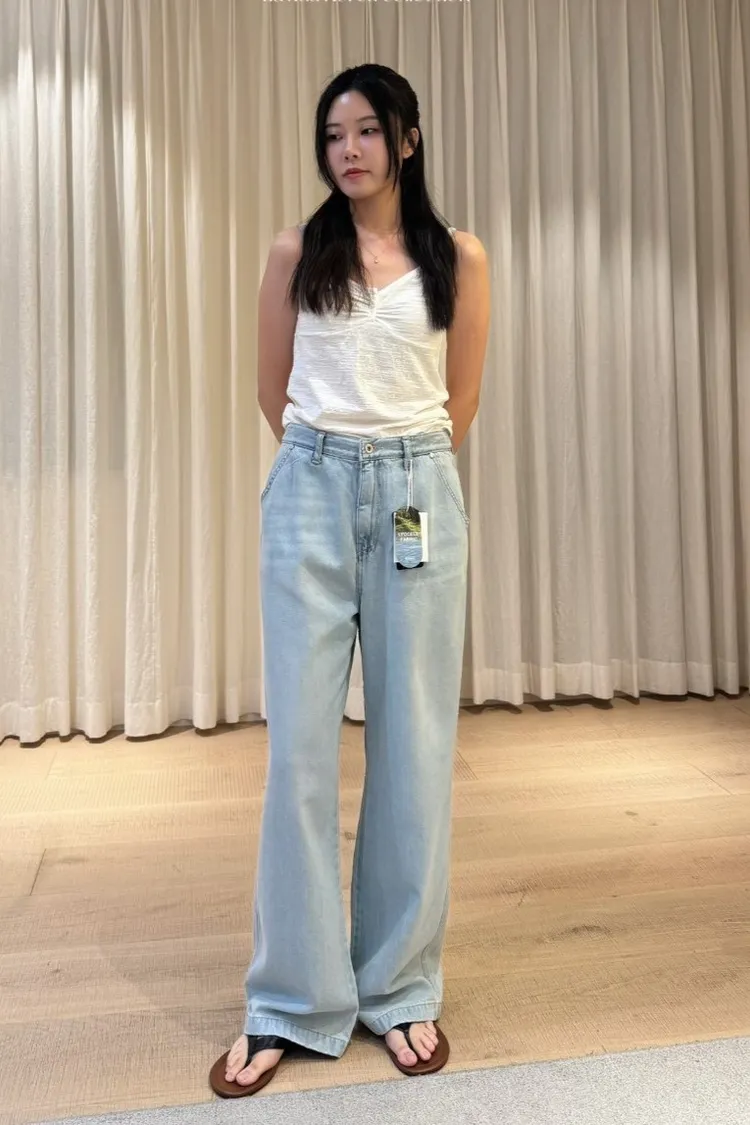 萊賽爾+天絲 薄款柔軟 透氣舒適 釦鍊穿脫有口袋 直筒版型 中高腰 適合夏天