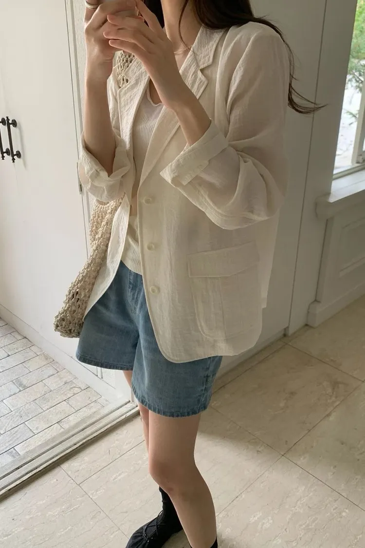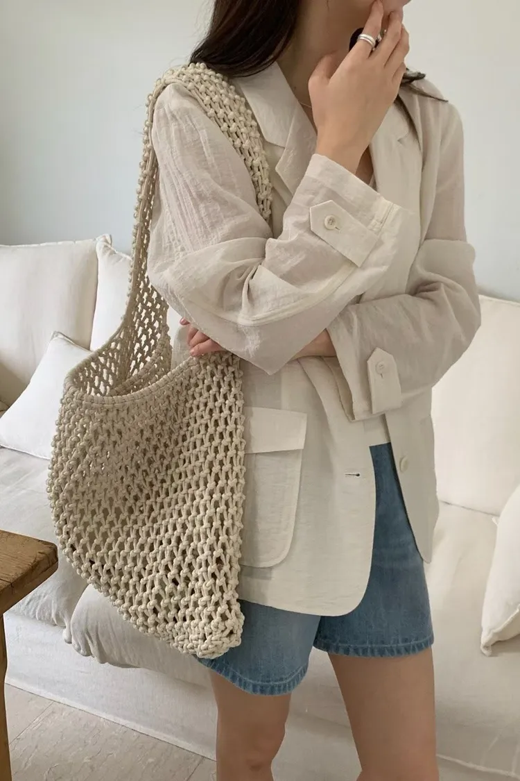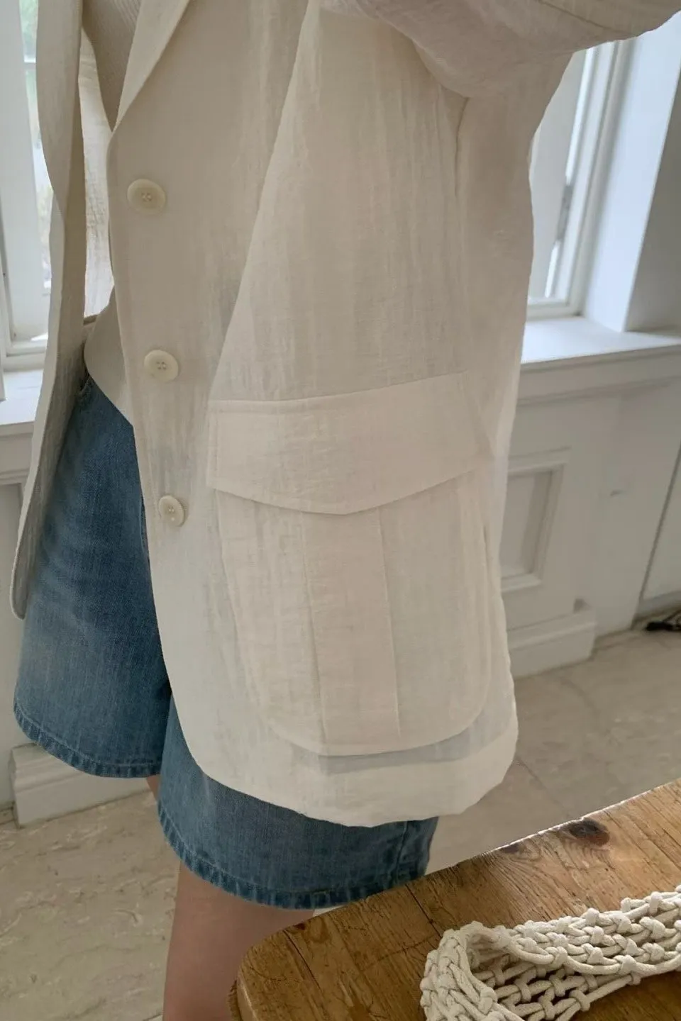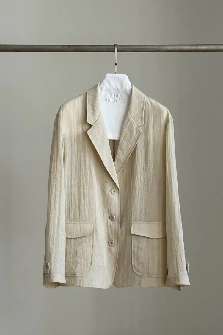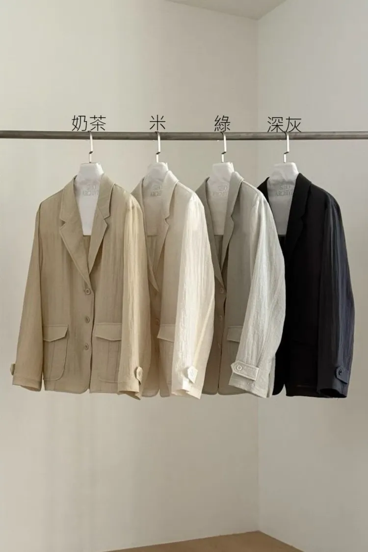 麻+縲縈+尼龍 薄款透氣 細節車線 有口袋 愛馬仕鈕釦