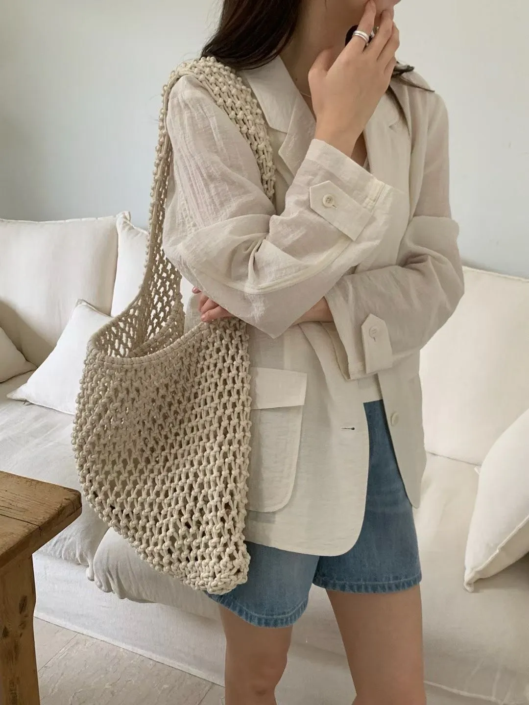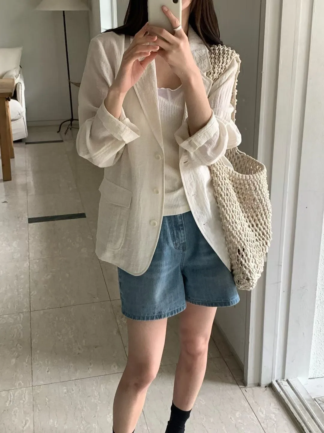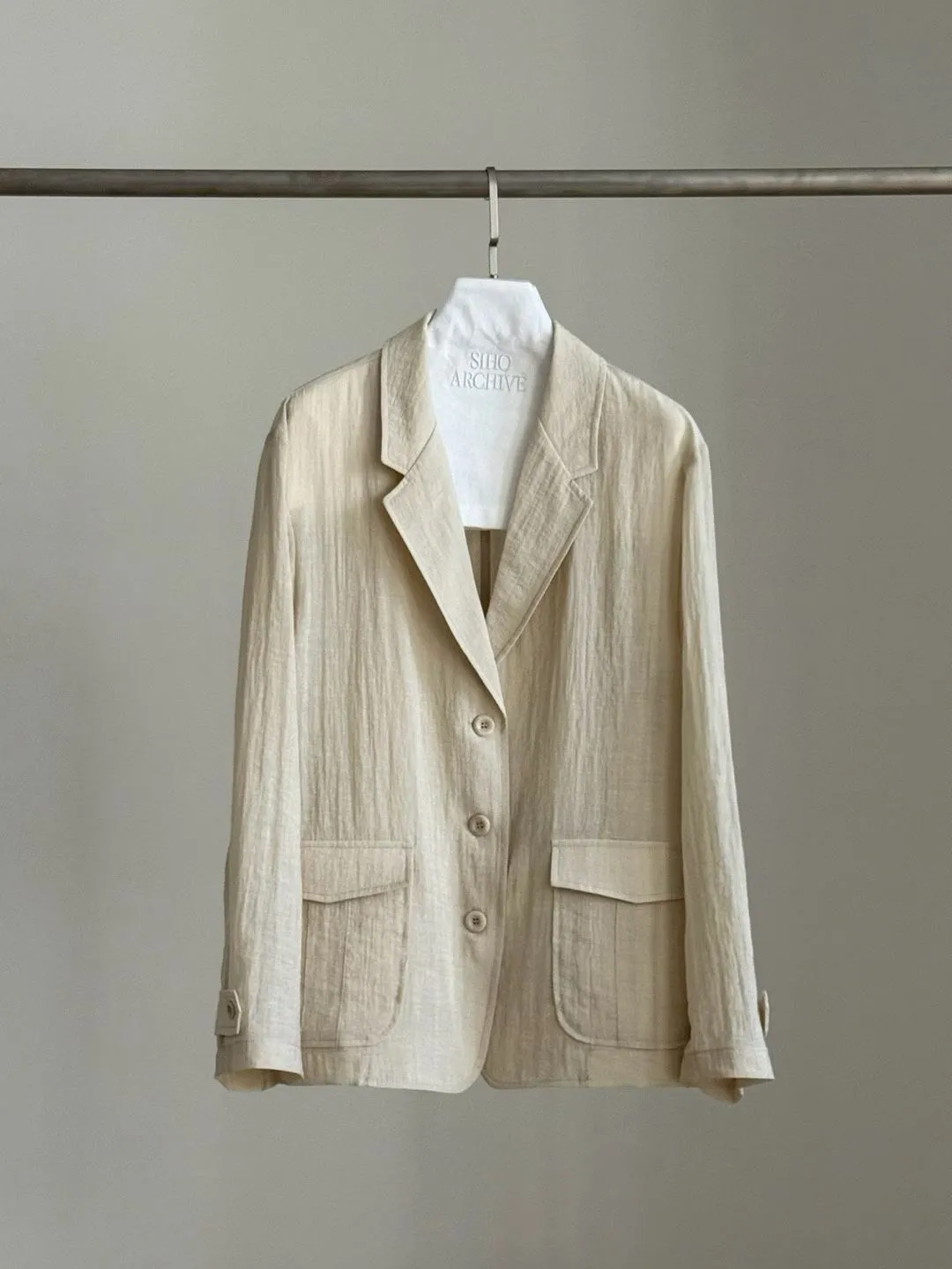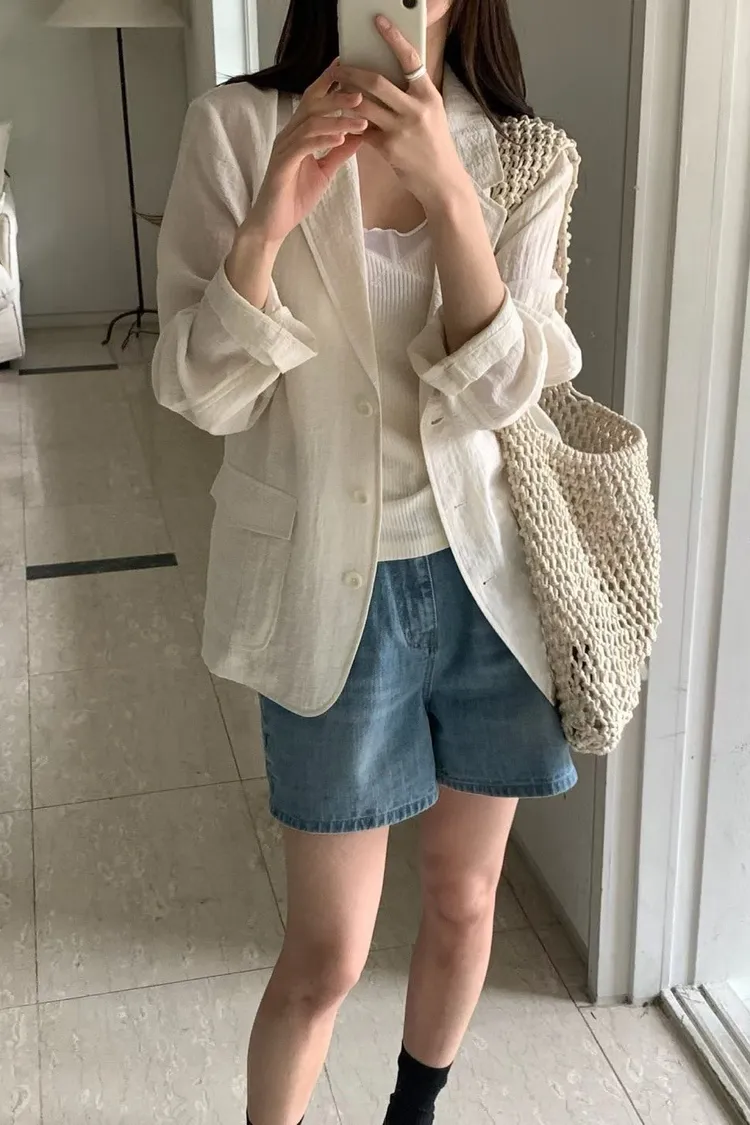 麻+縲縈+尼龍 薄款透氣 細節車線 有口袋 愛馬仕鈕釦