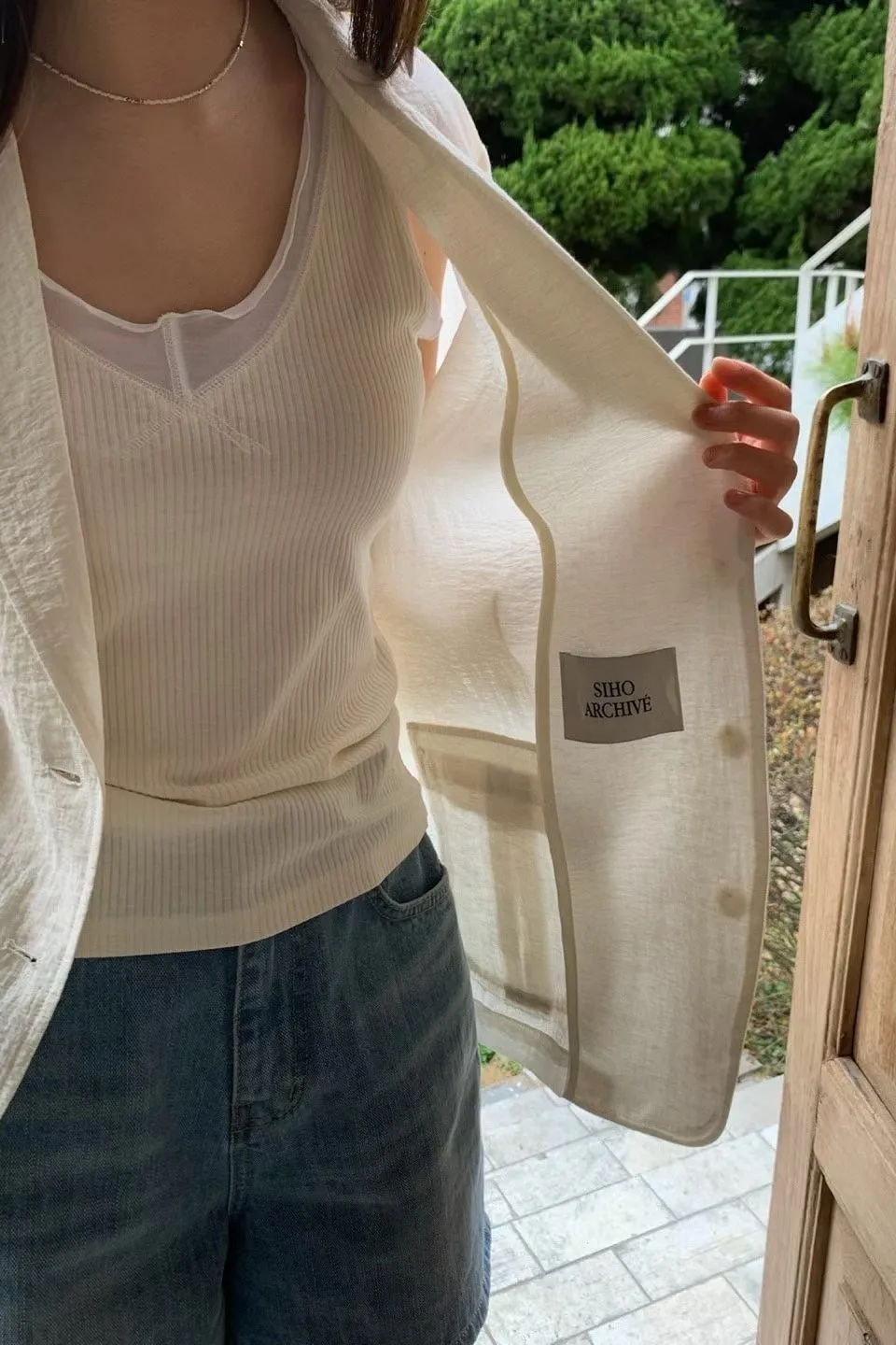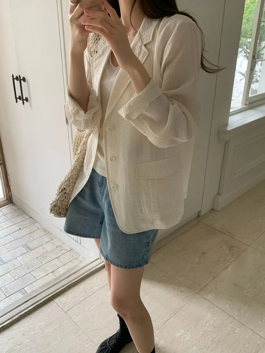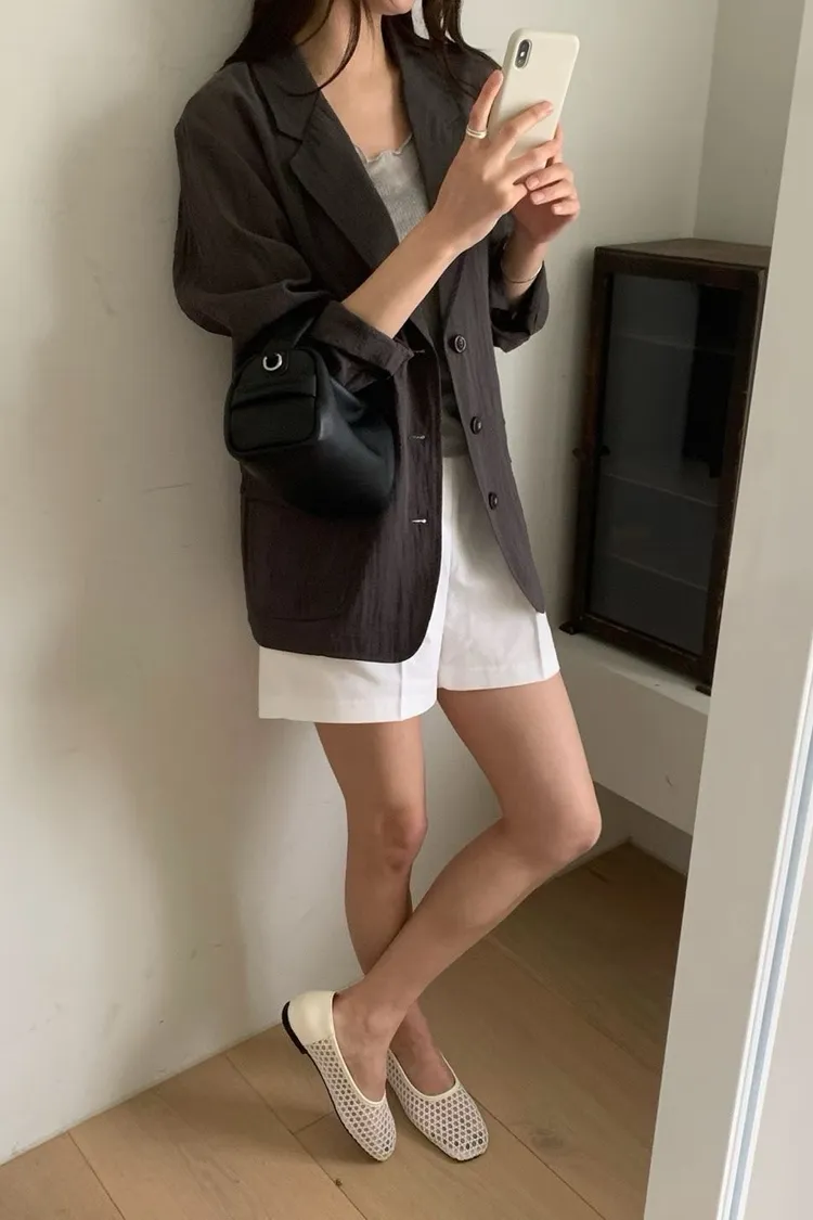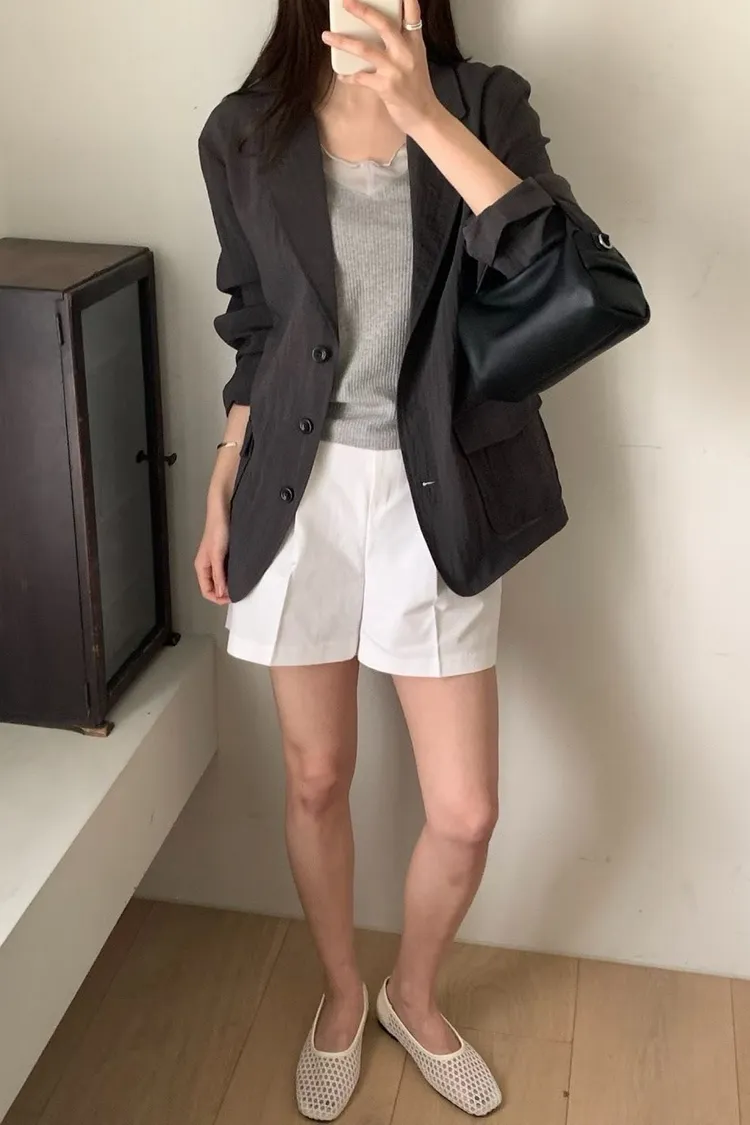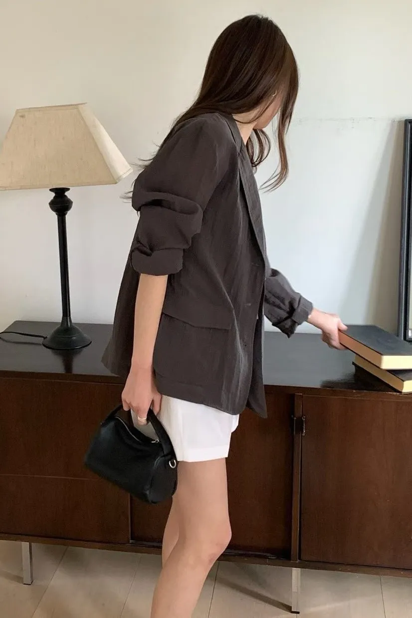 麻+縲縈+尼龍 薄款透氣 細節車線 有口袋 愛馬仕鈕釦