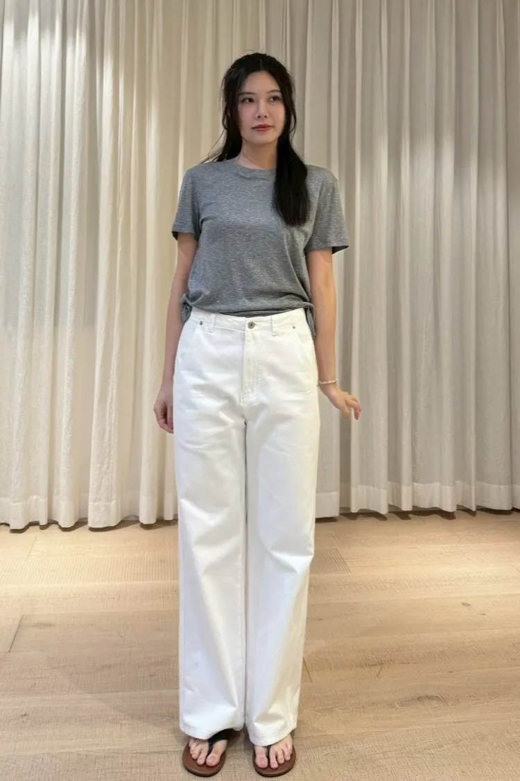 斜紋棉 釦鍊穿脫 有口袋 直筒顯腿長 中高腰版型