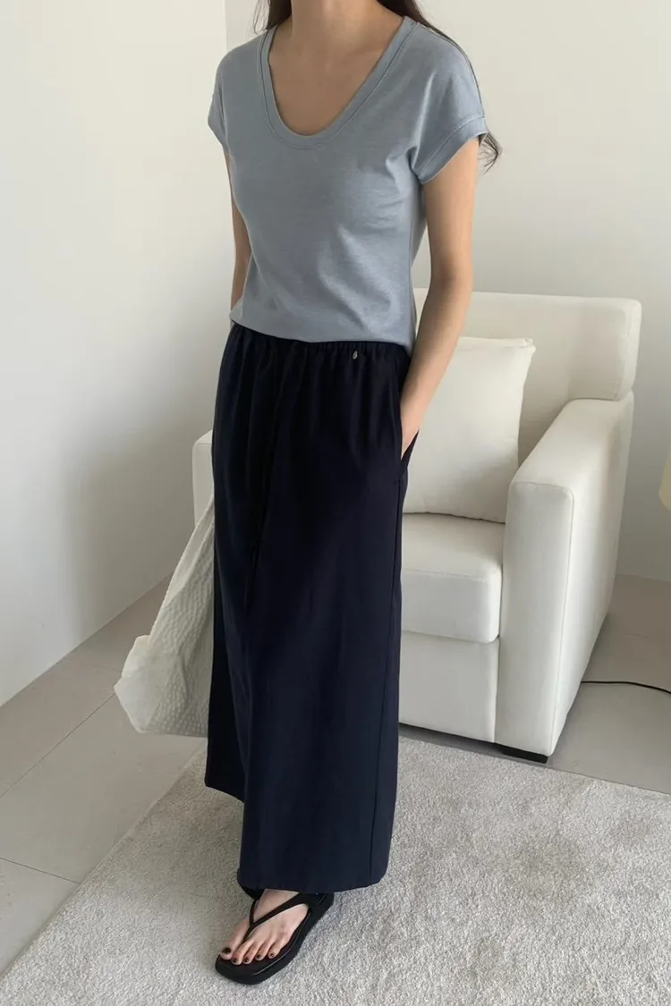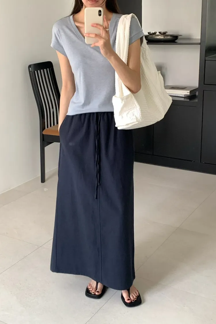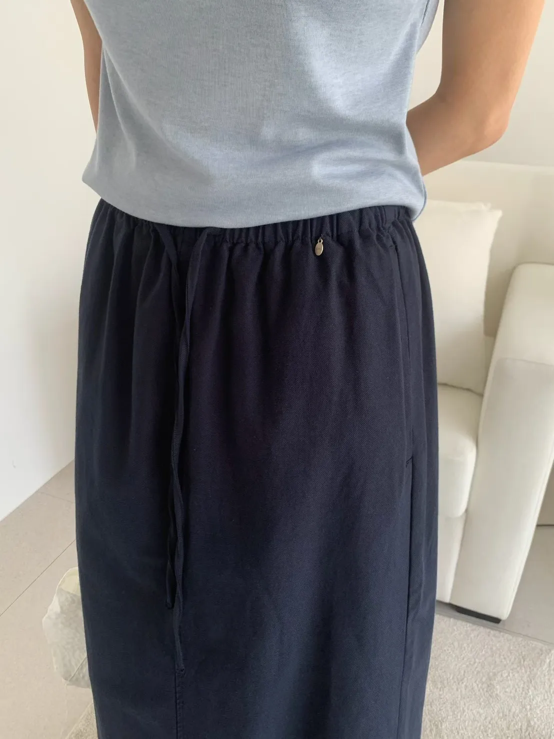 萊賽爾天絲+棉 薄款透氣 親膚舒適 滑順面料 腰有鬆緊抽繩 有口袋 後開叉