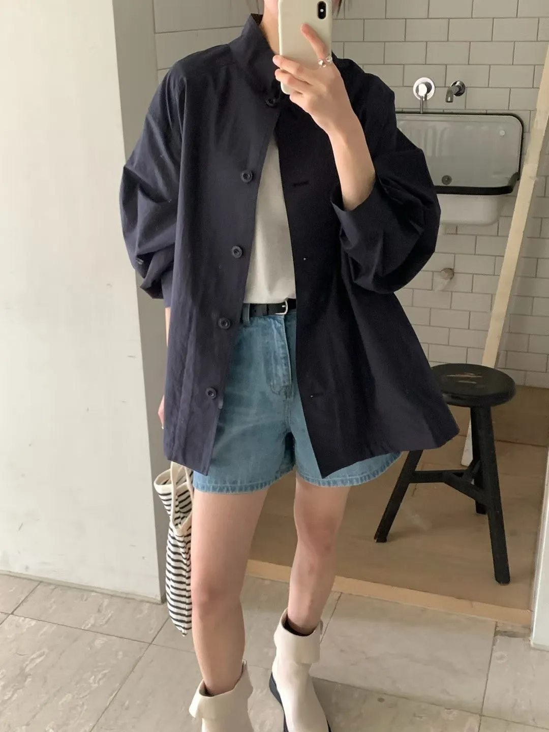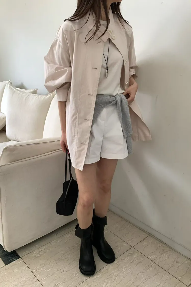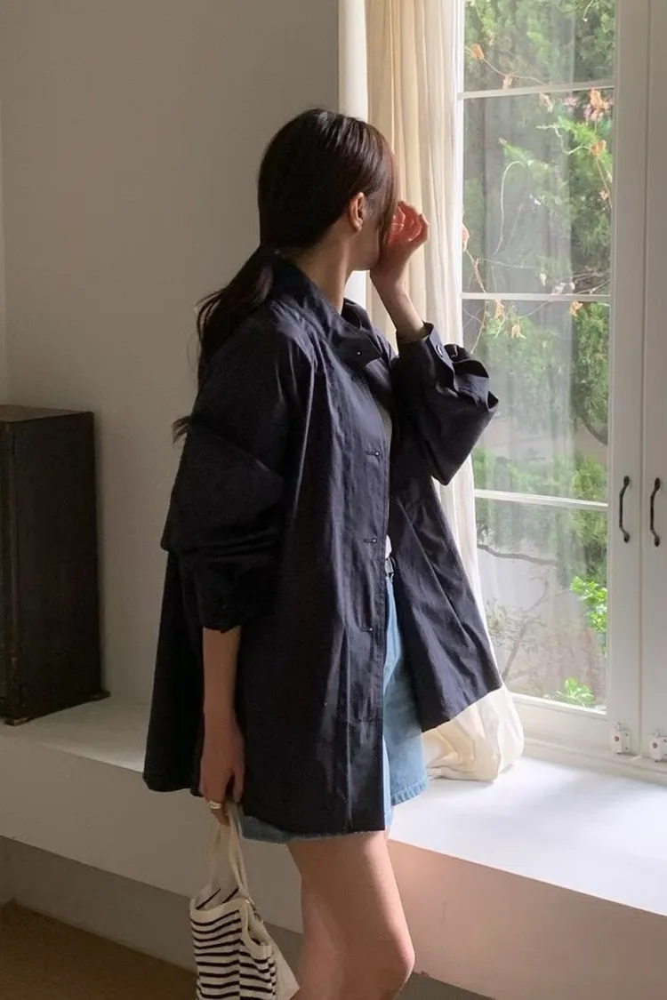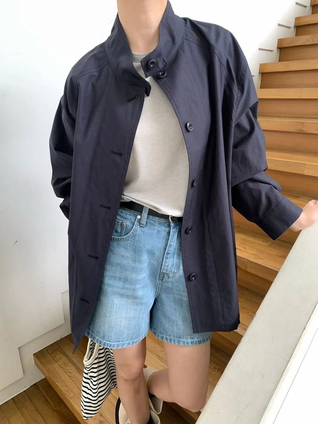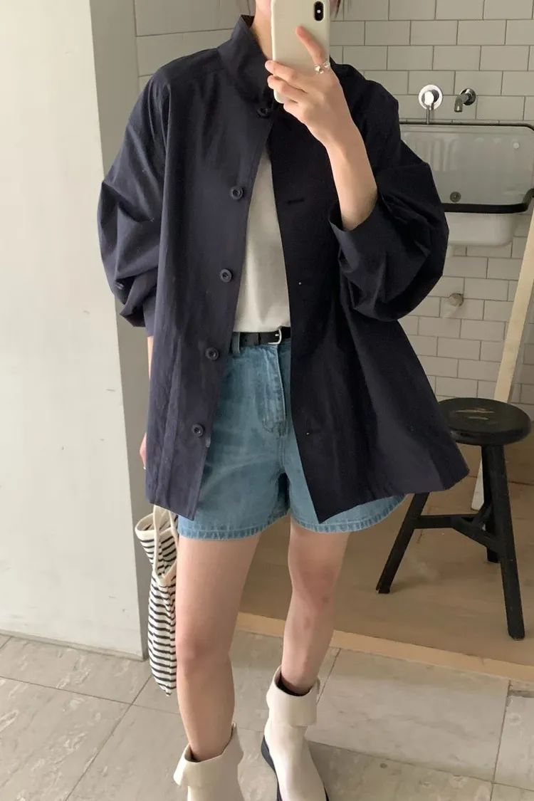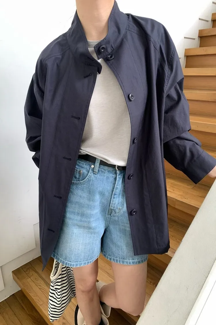 棉 日本工藝極薄款 無內裡 車線包邊 有口袋 排釦穿脫