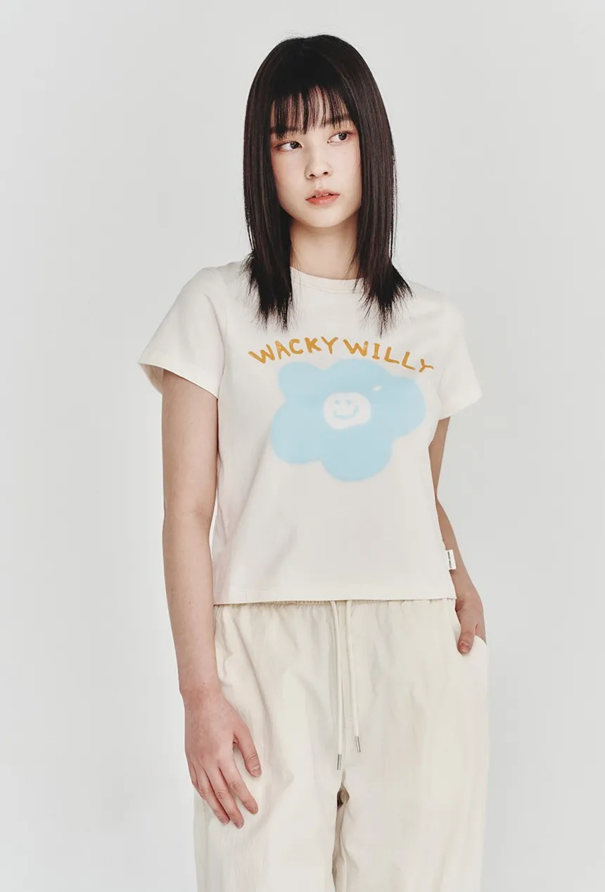 Wacky001可愛大花花短袖tshirt(原TW274) 米 粉 S M 官網價$1000 永恆甜甜價$950 尺寸(cm),S肩寬34胸寬42.5袖長14.5全長45M肩寬35.5胸寬45袖長15.5全長47以下米色穿搭👇🏻 以下顏色,米色 以下顏色,粉色
