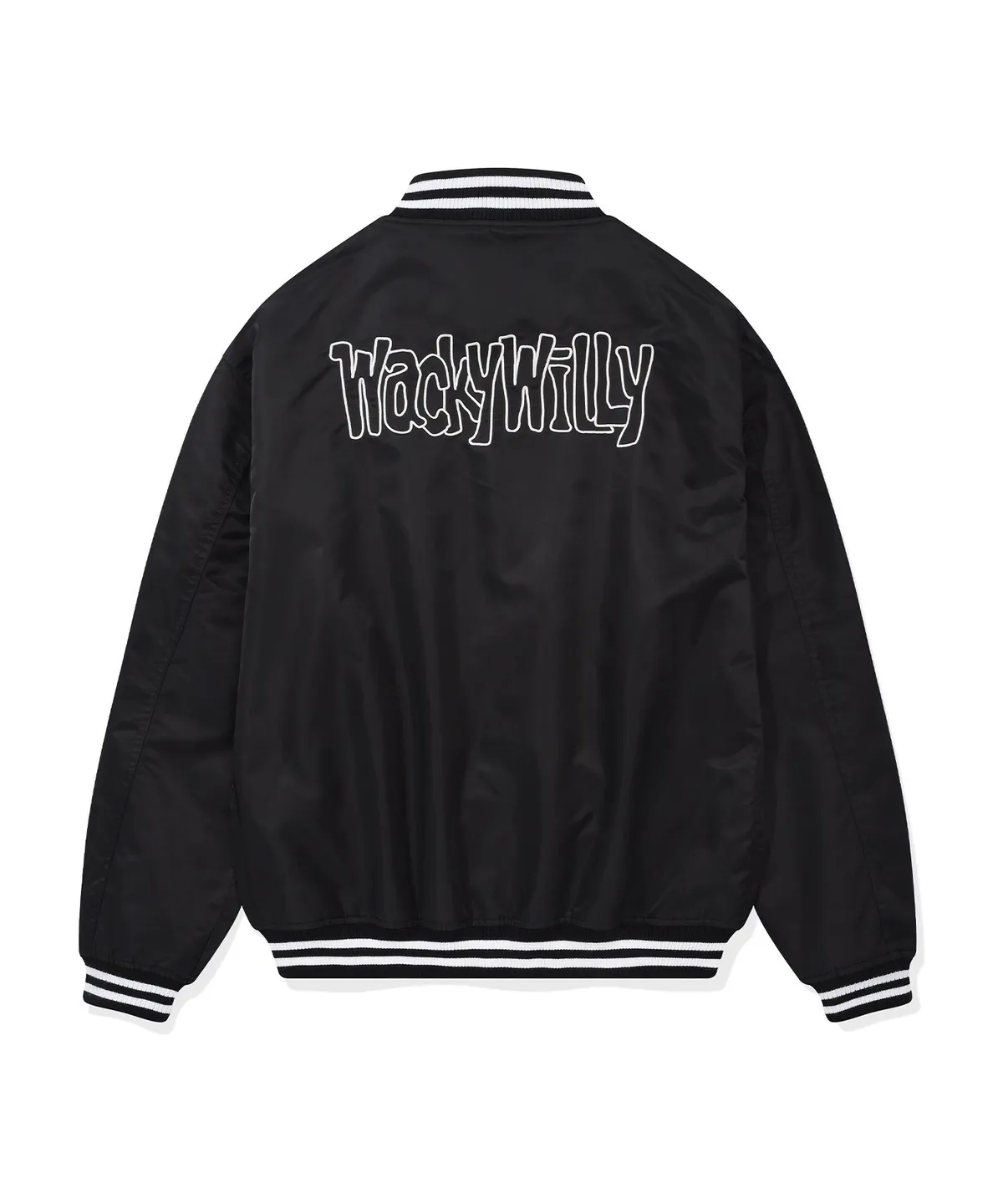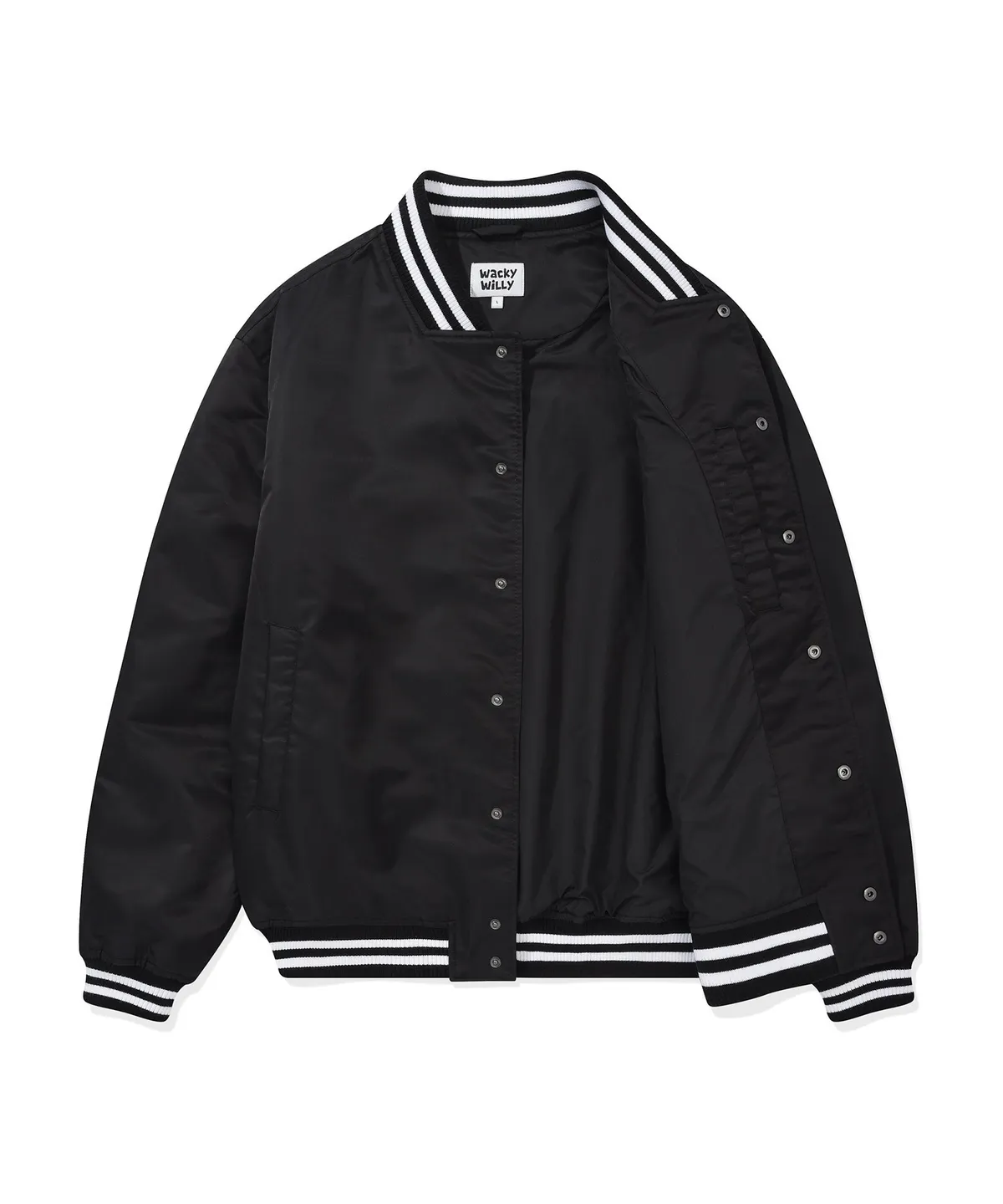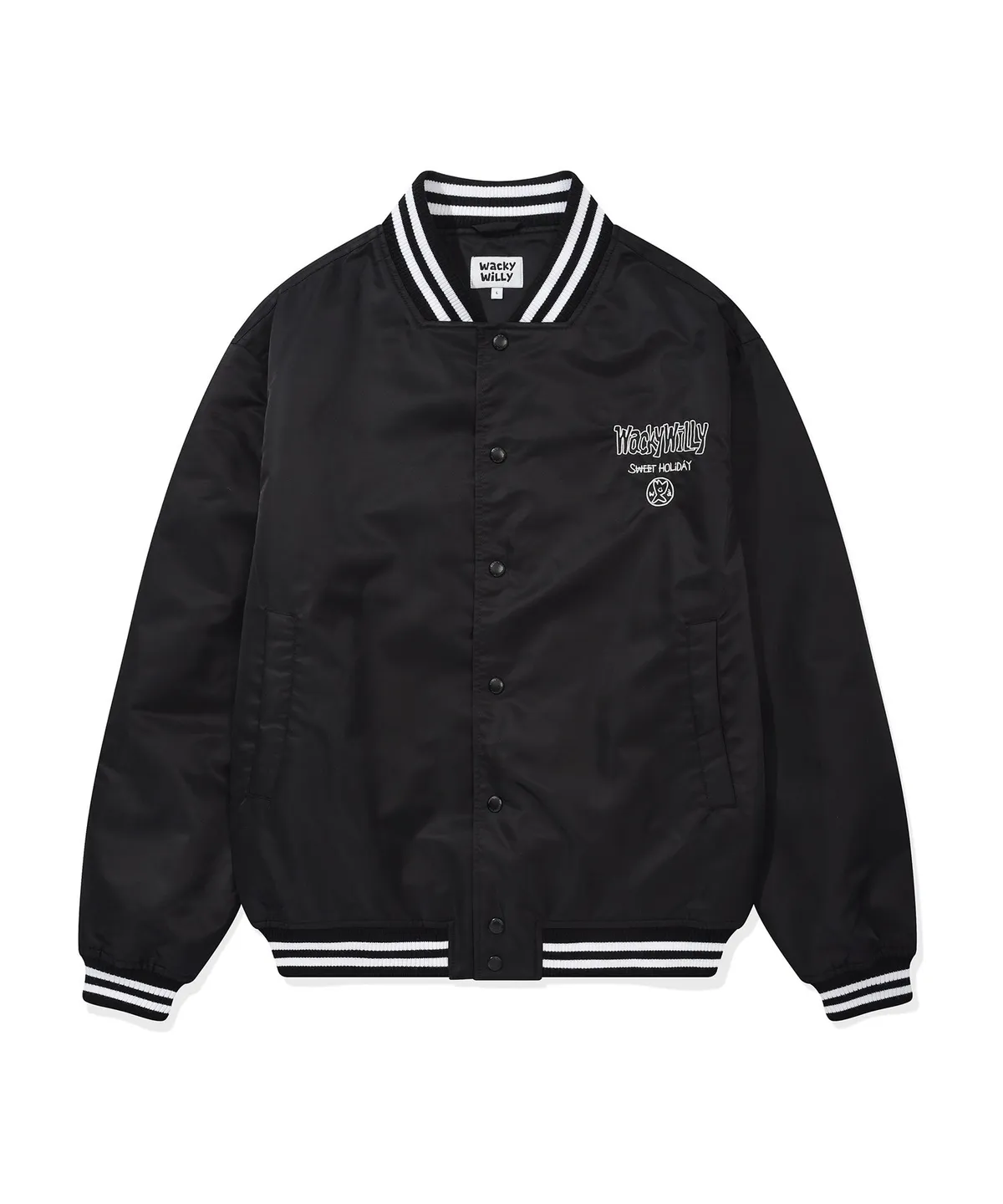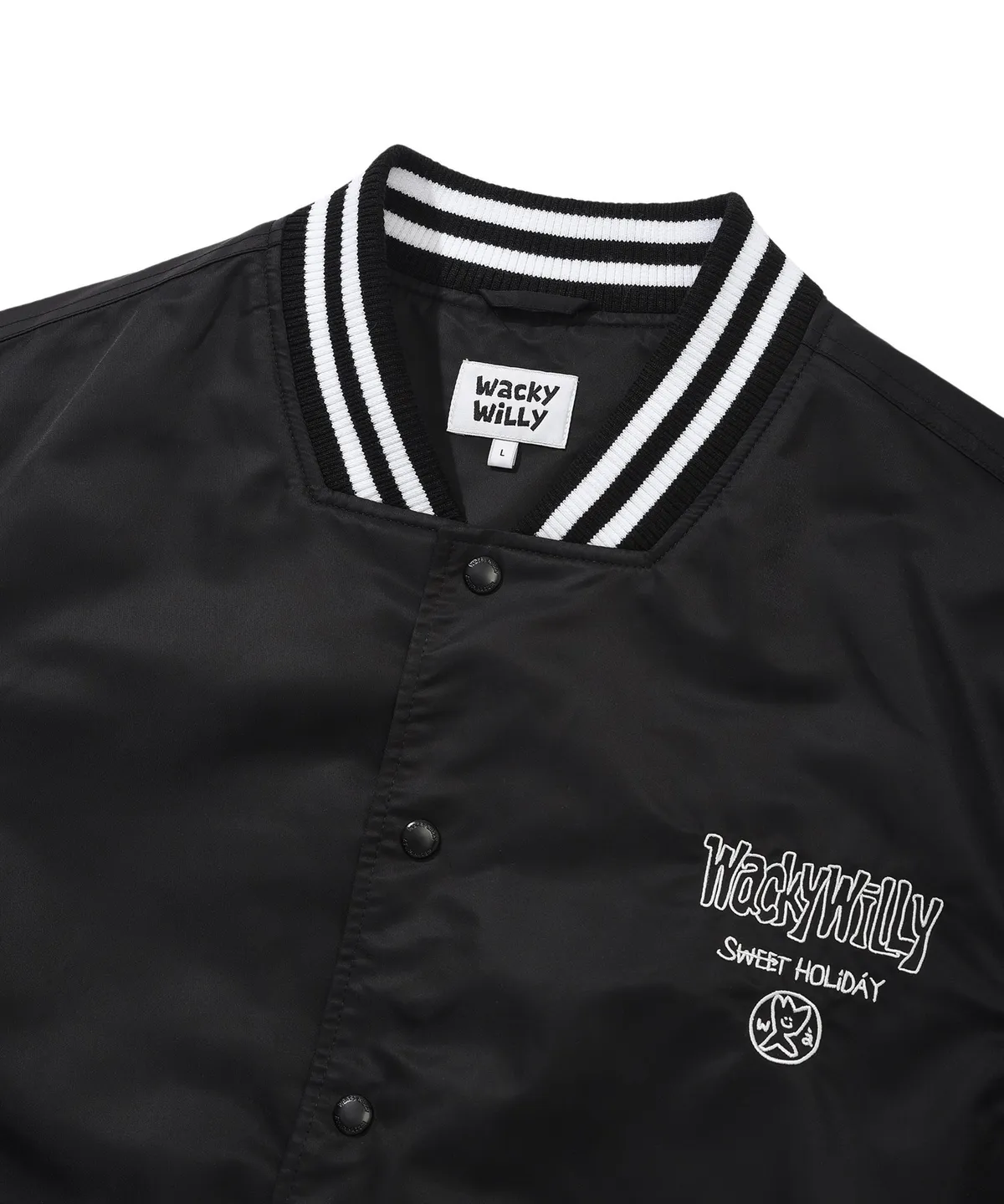 Wacky006潮流黑色棒球外套(原TW269) S M L XL 官網價$3040 永恆甜甜價$2990S肩寬50胸寬55袖長60全長64M肩寬52胸寬57.5袖長61全長66L肩寬54胸寬60袖長62全長68XL肩寬56胸寬62.5袖長63全長70