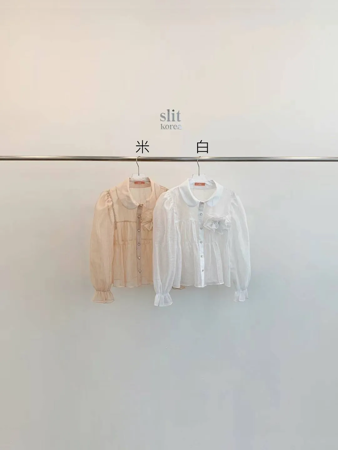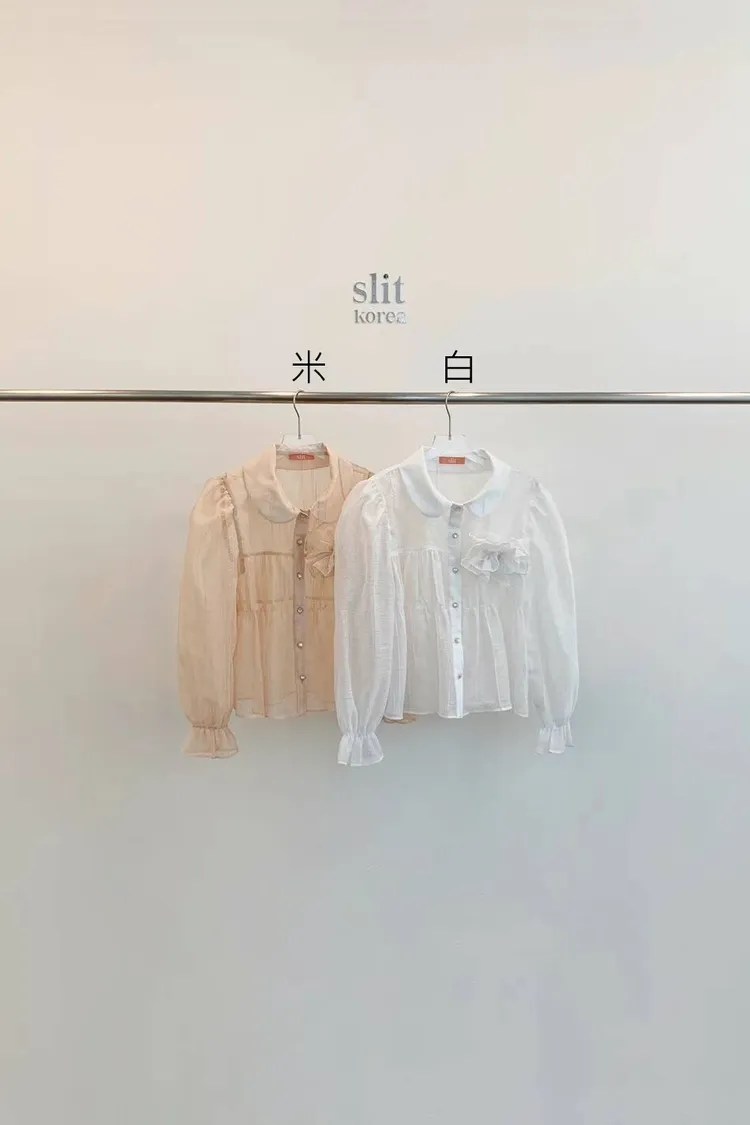 YF313氣質水滴金邊釦透光感美衣(附胸針) 白 米 官網價$1360 線上價$1330