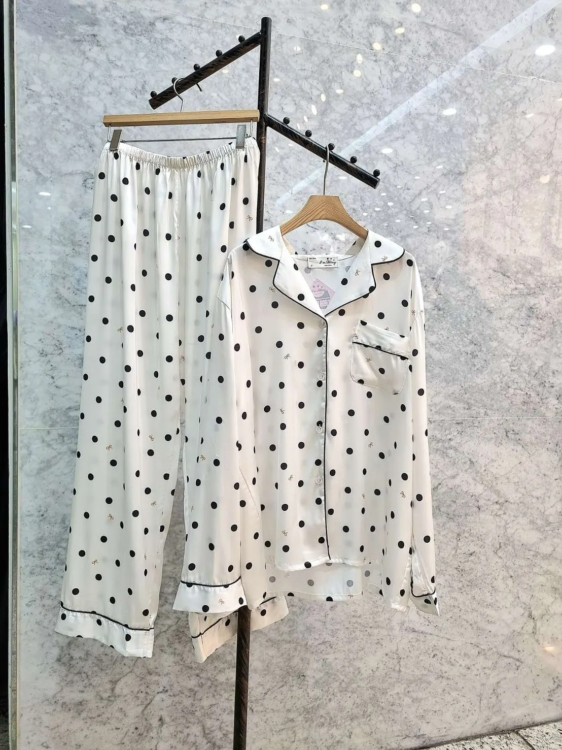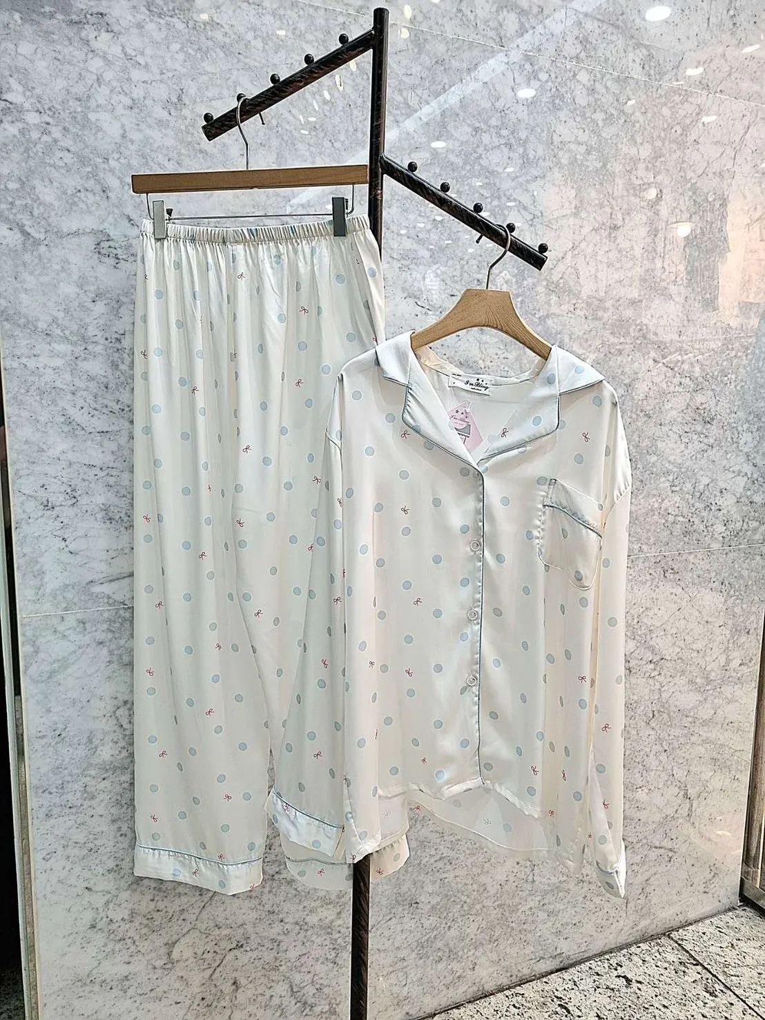 YN005一秒入睡點點絲滑睡衣套裝(長袖長褲) 藍 黑 官網價$1150 線上價$1120