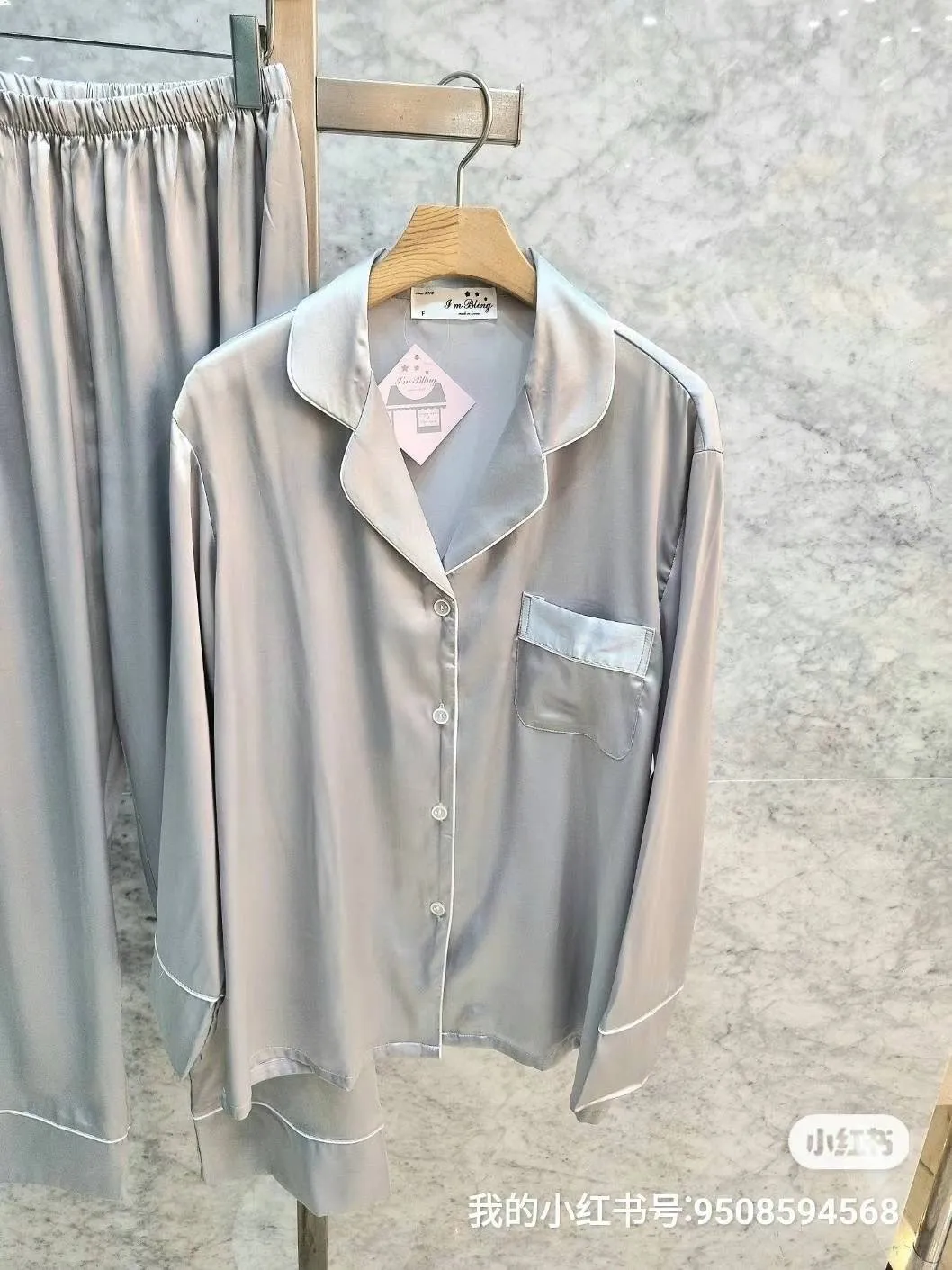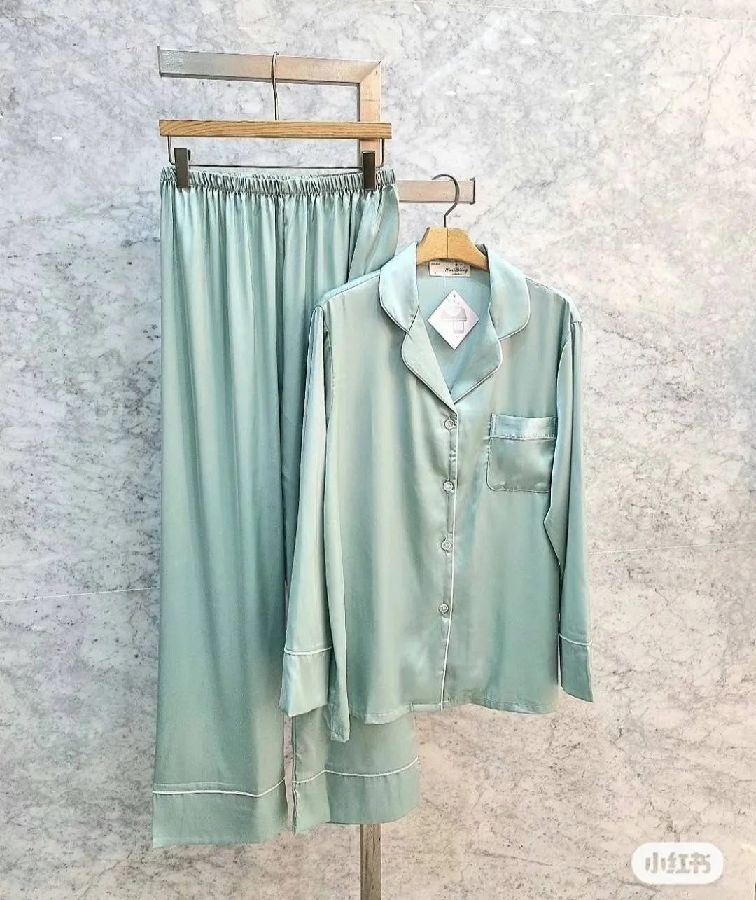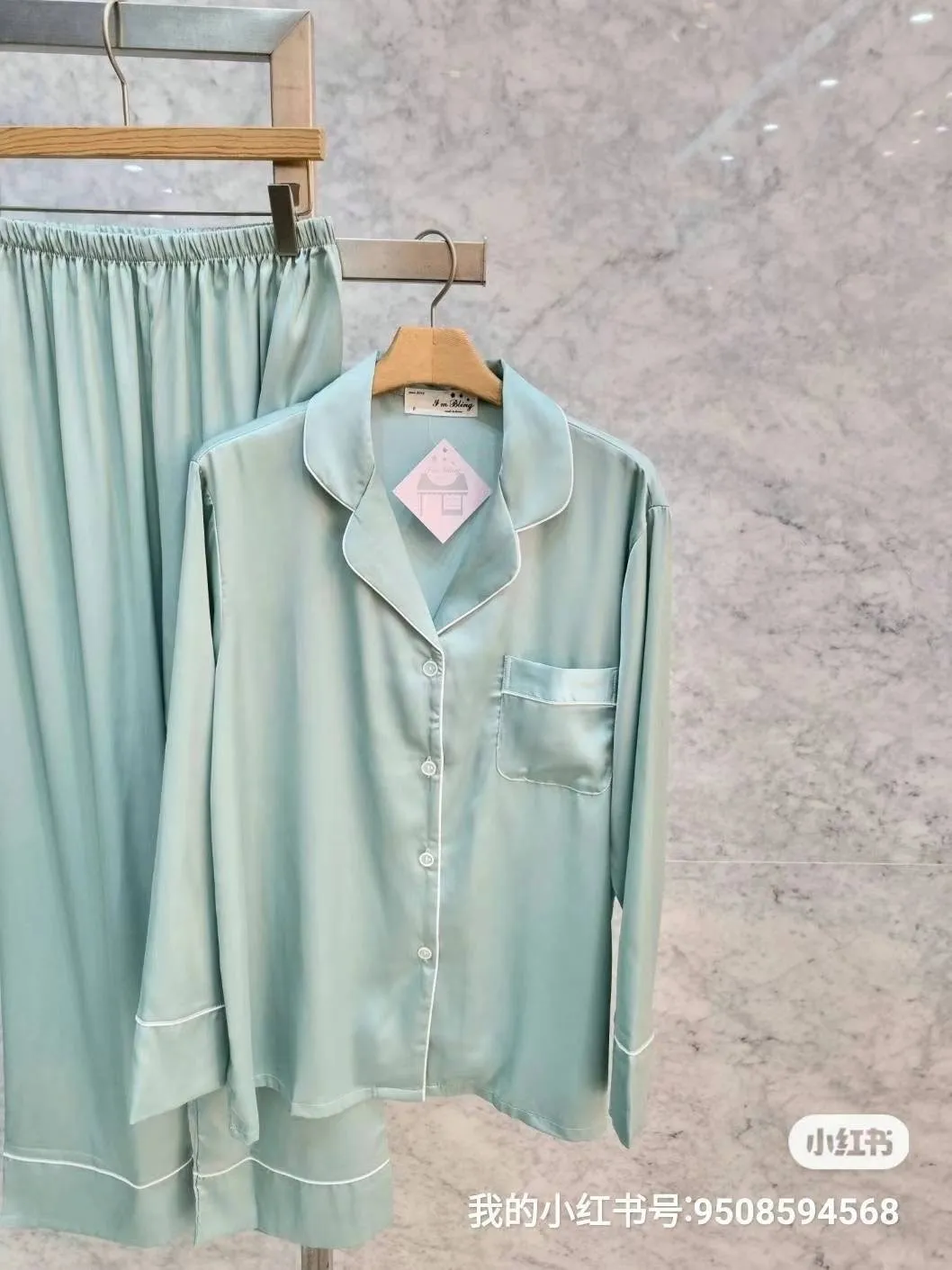 YN015高級感絹絲光澤睡衣套裝 銀 綠 官網價$950 線上價$920