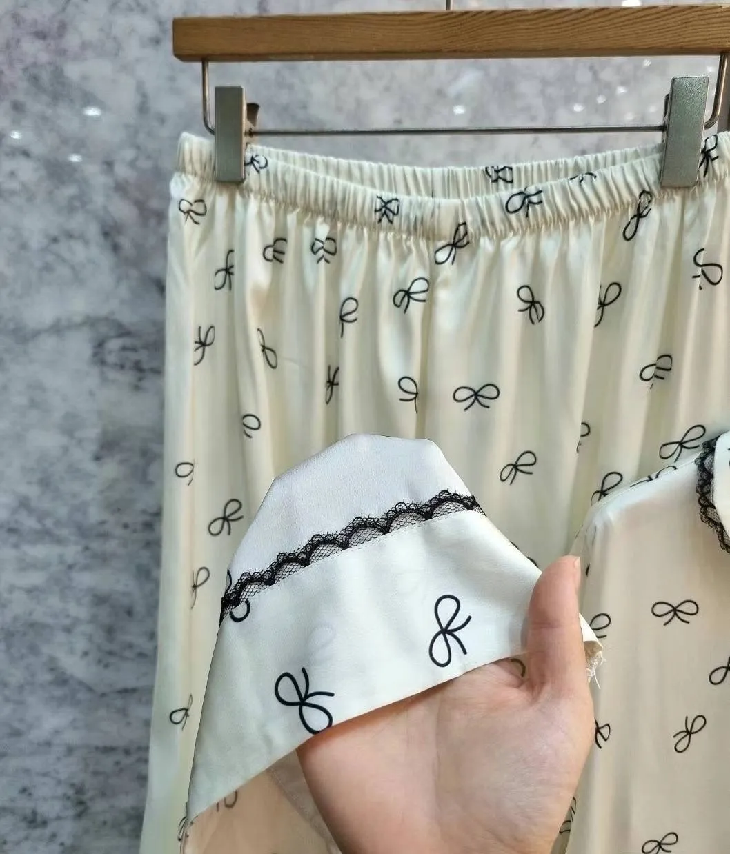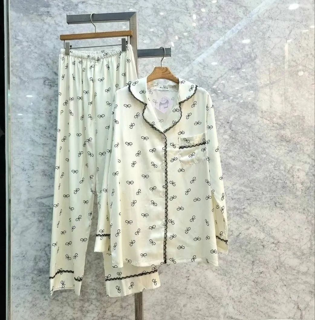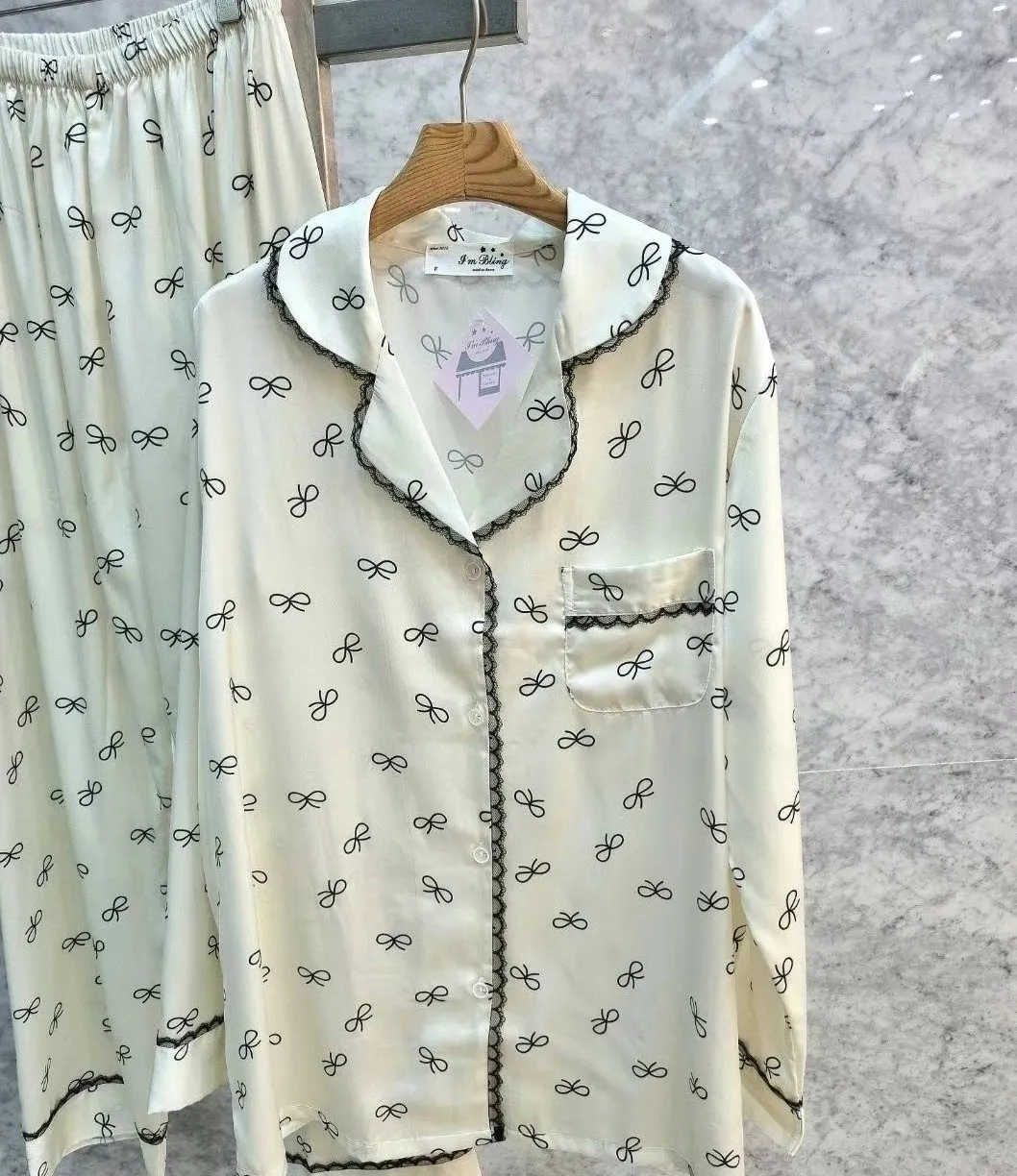 YN017許願款緞稠蝴蝶結睡衣套裝(上衣長褲) 官網價$1020 線上價$990