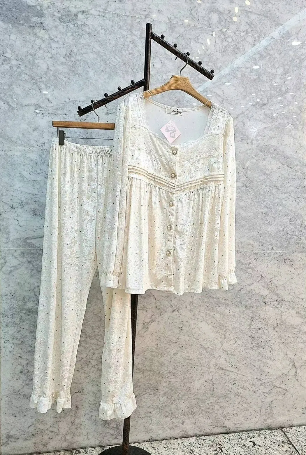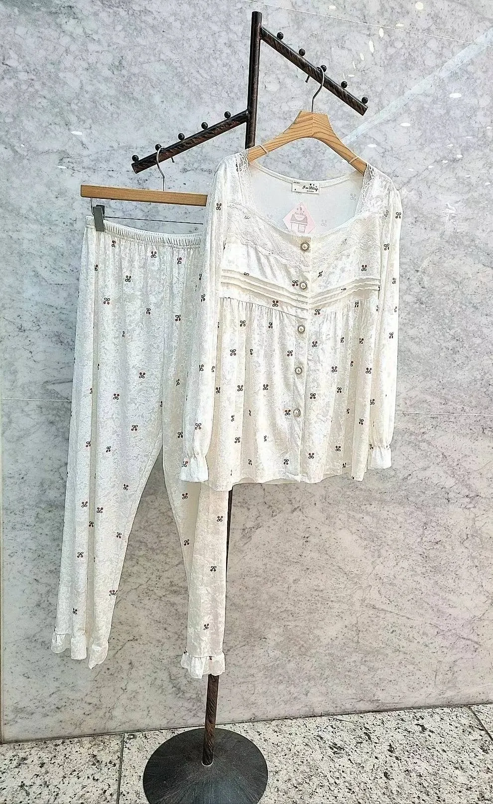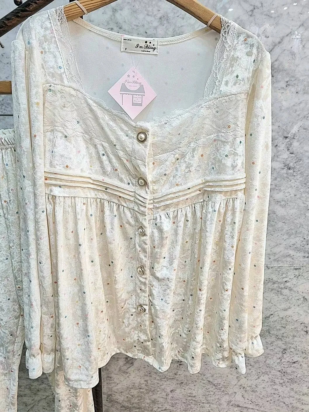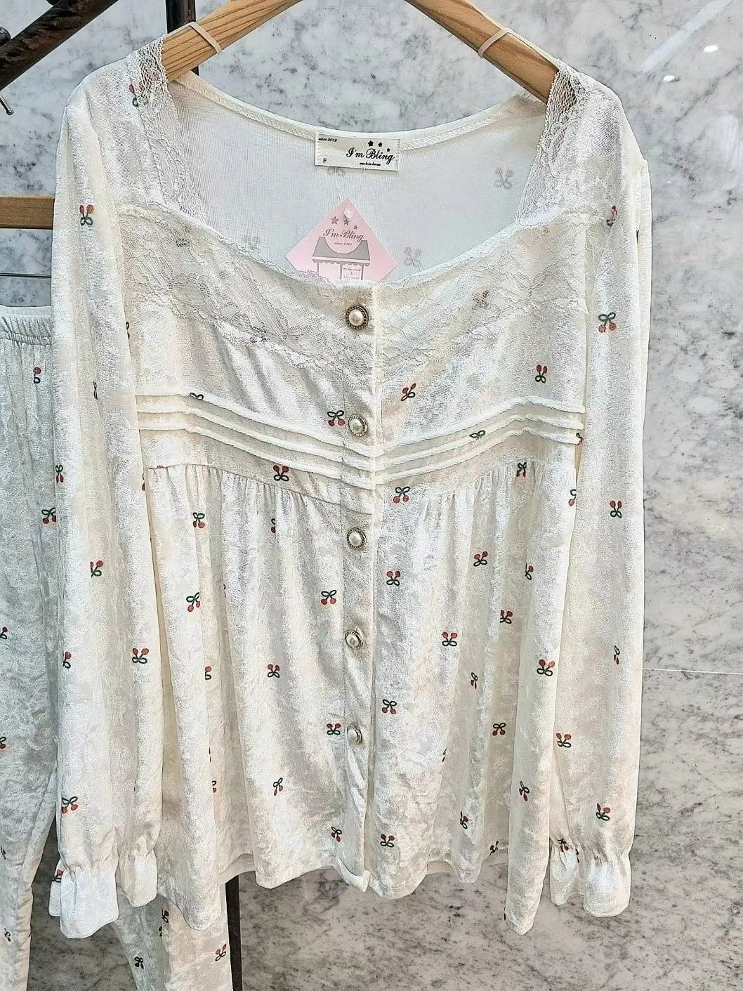 YN019氣質珍珠釦睡衣套裝(上衣長褲) 櫻桃 點點 官網價$950 線上價$920