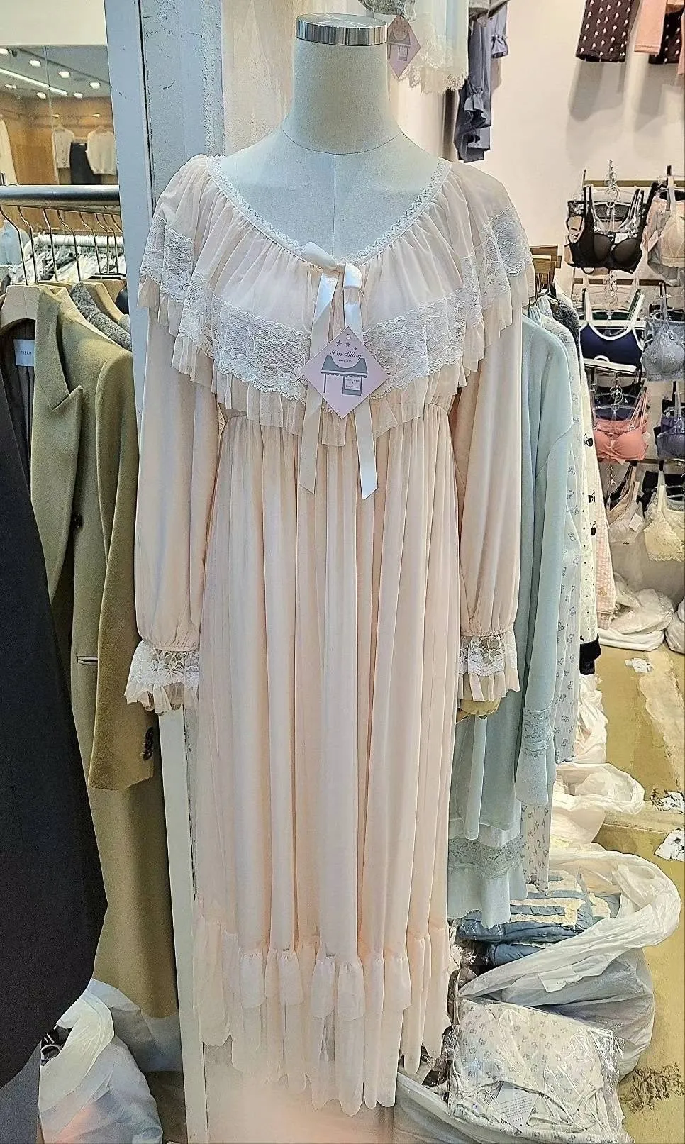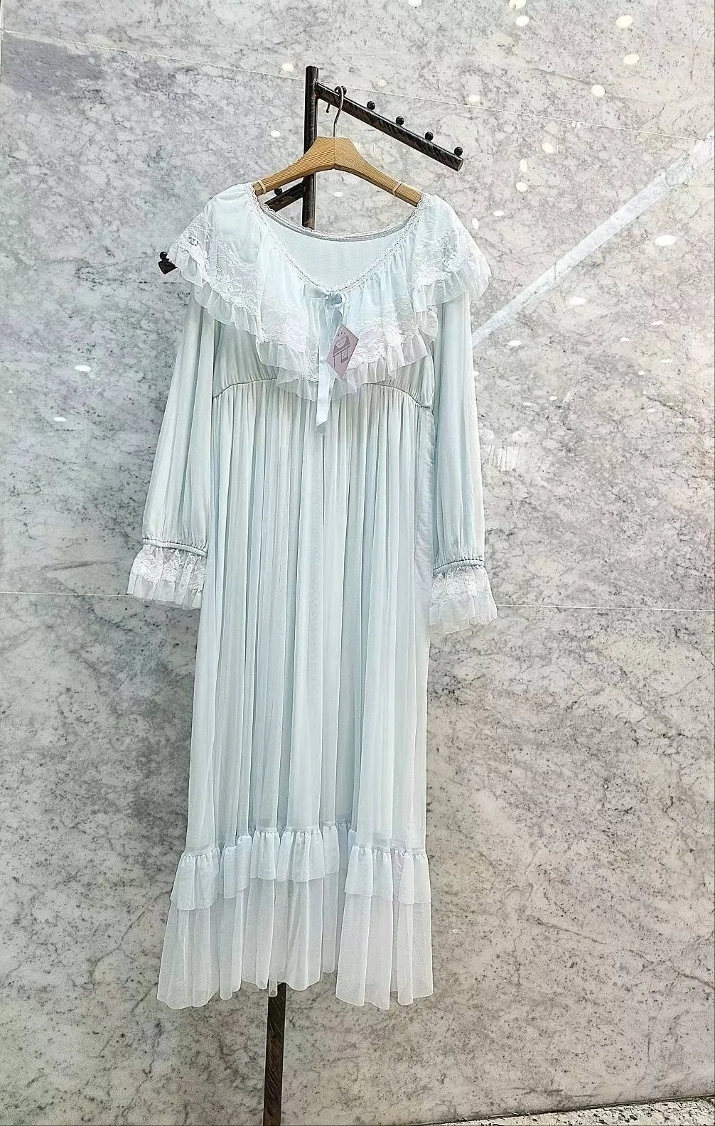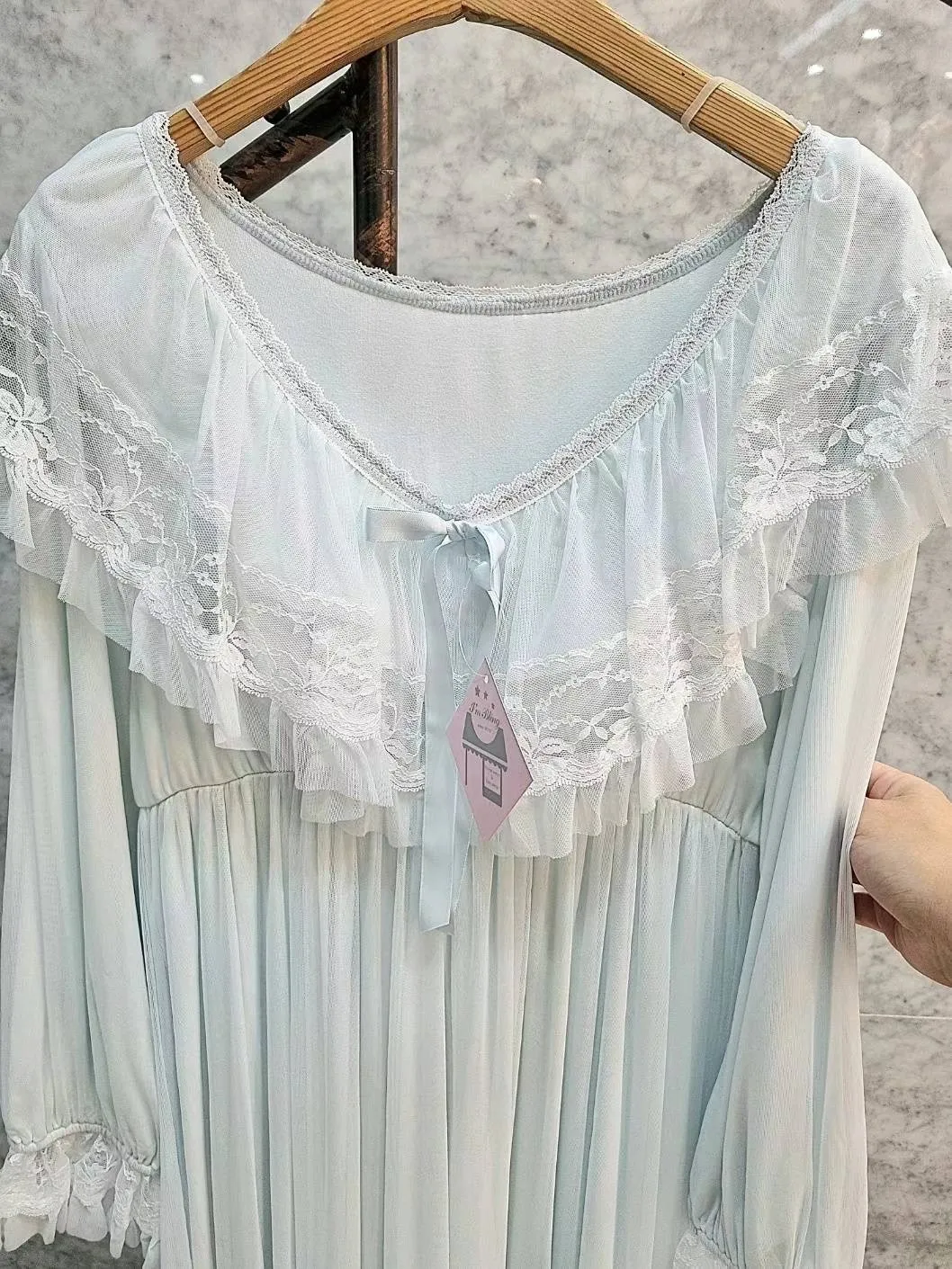 YN020推薦款雲朵蕾絲網紗洋裝睡衣 粉 藍 官網價$1250 線上價$1220