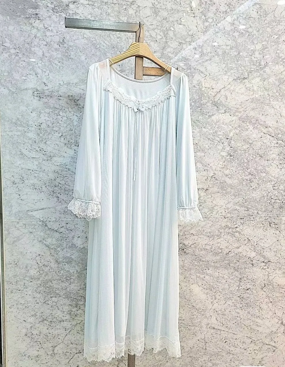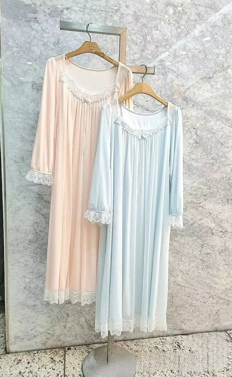 YN021推薦款氣質蕾絲瀑布洋裝睡衣 藍 粉 官網價$1190 線上價$1160