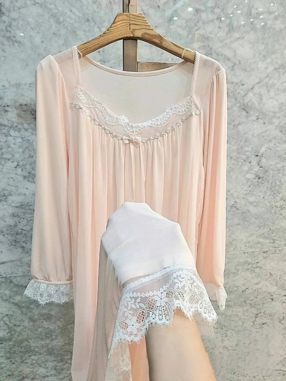 人造絲 推薦款 柔軟親膚 觸感滑順 仙女垂墜感 胸前細緻蕾絲 敏肌舒適