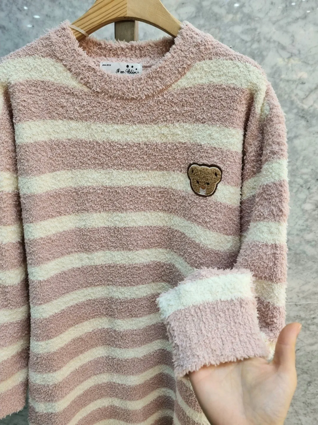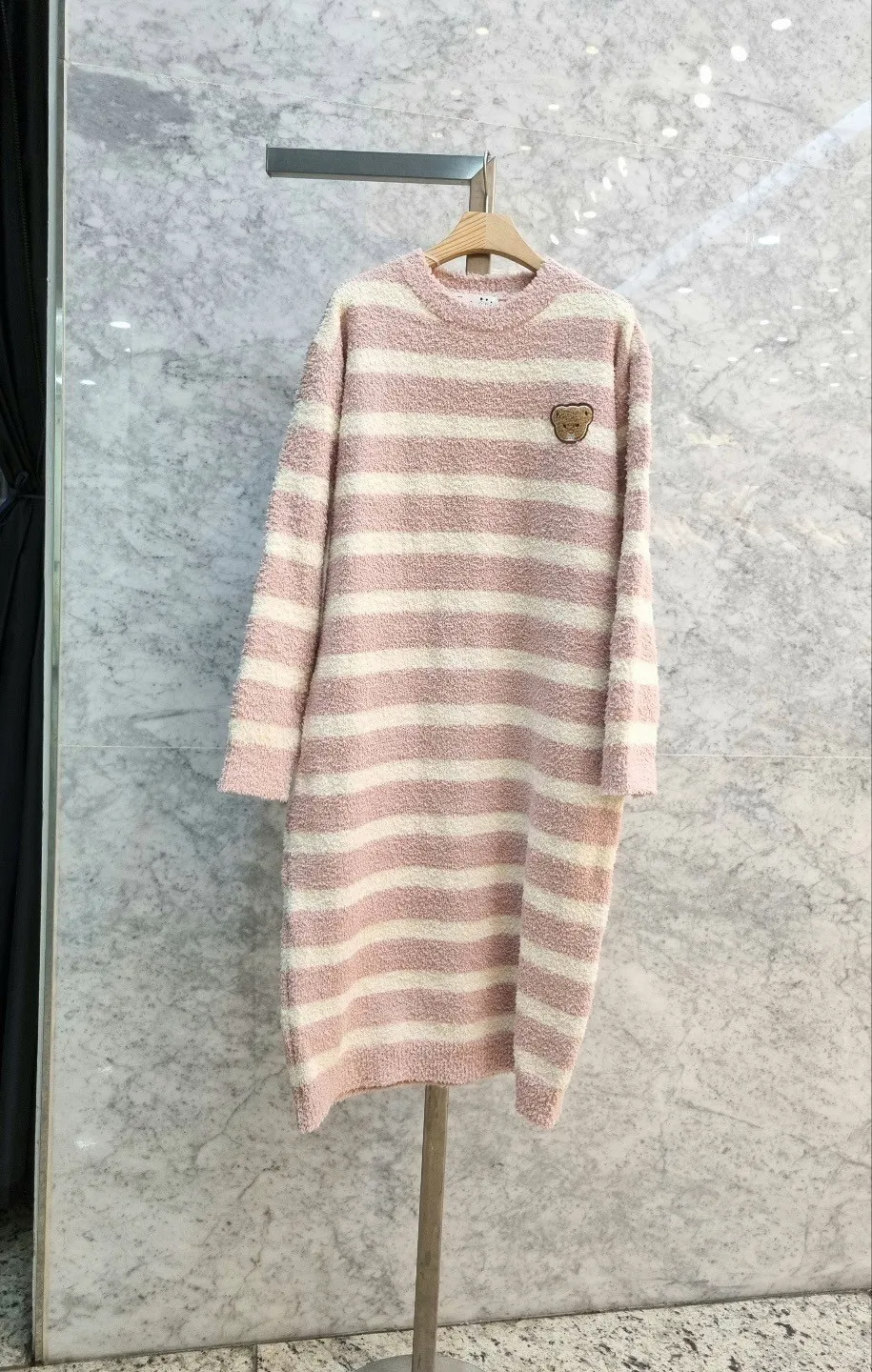 YN023條紋熊熊洋裝睡衣 粉 灰 官網價$1090 線上價$1060