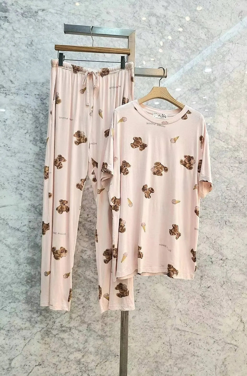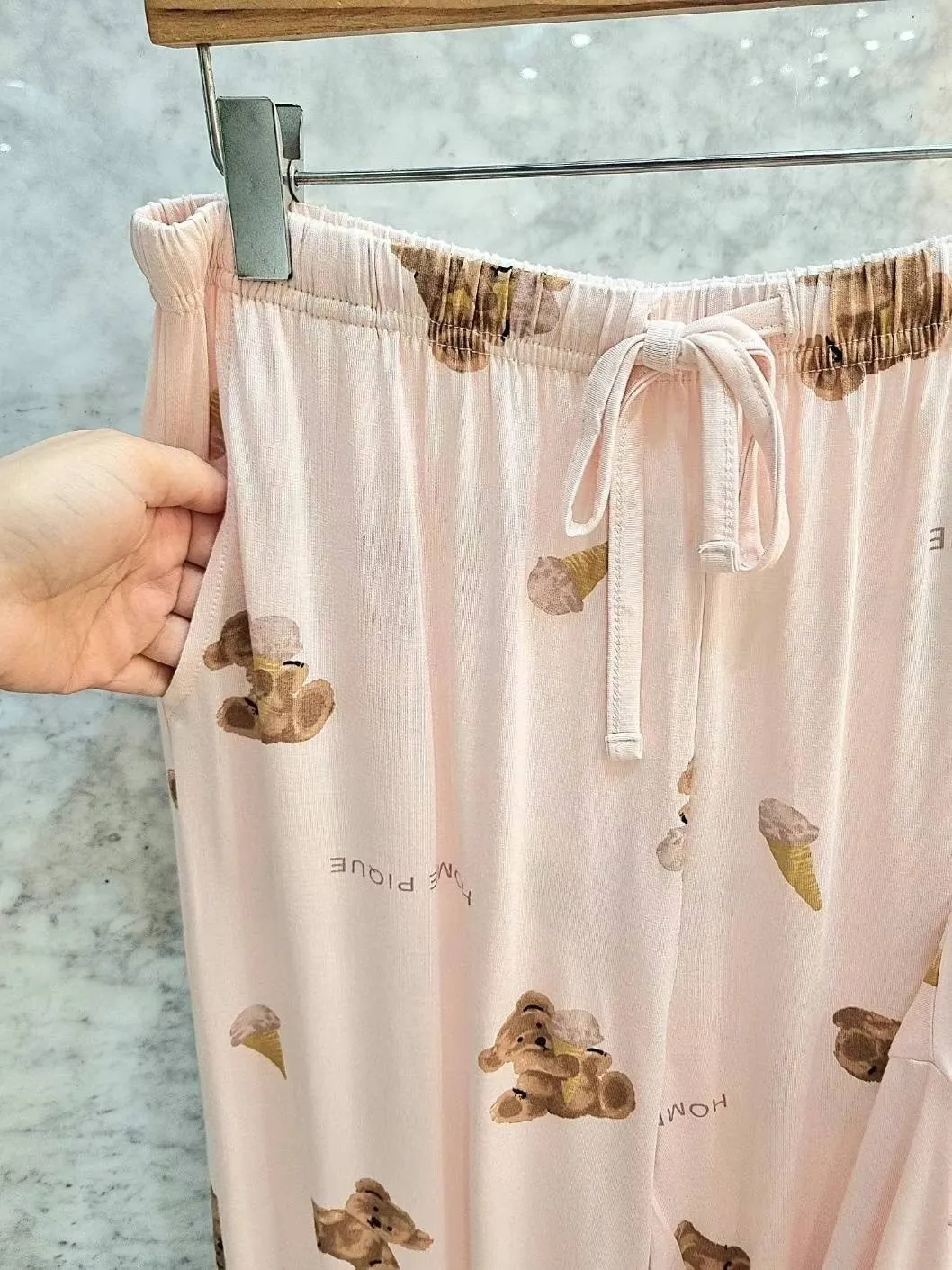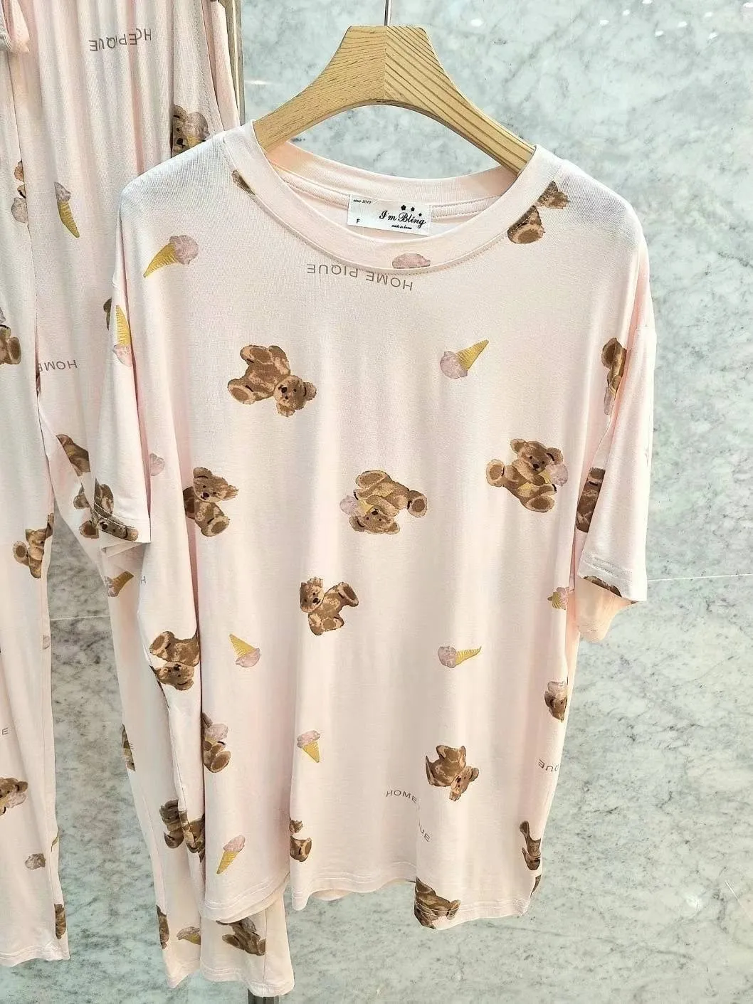 YN025冰絲短袖熊熊冰淇淋睡衣套裝(短袖長褲) 米 粉 官網價$980 線上價$950