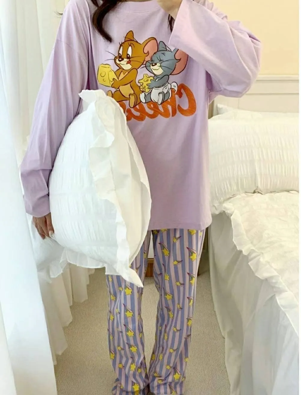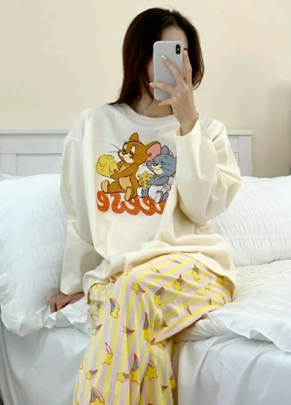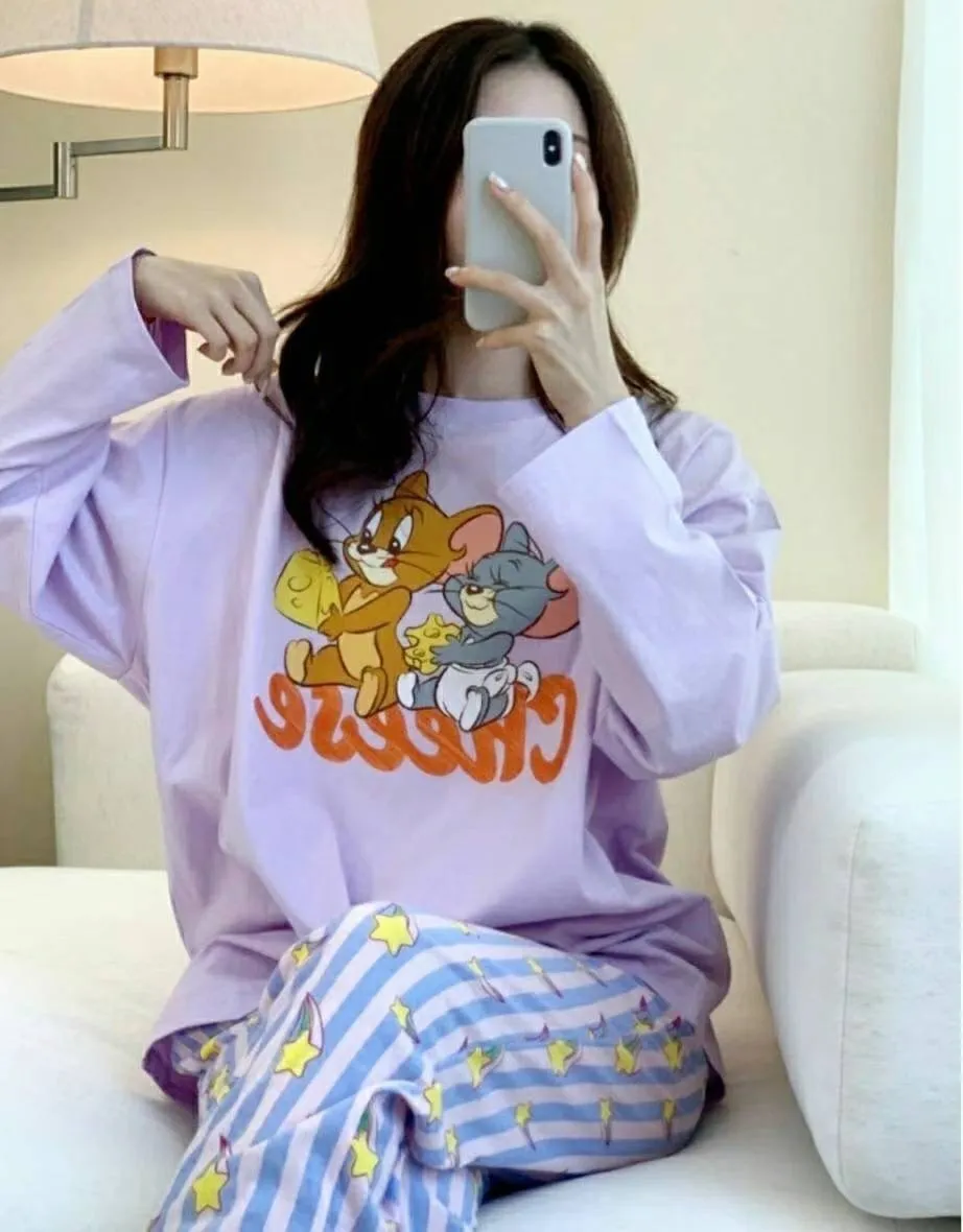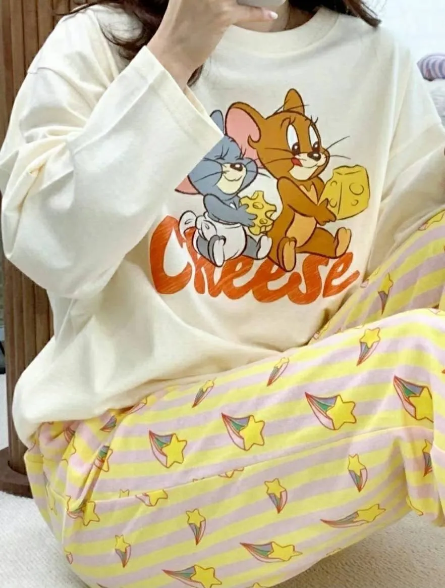 YN032睡衣套裝(長袖長褲) 傑利黃 傑利紫 米奇 米妮 邦妮藍 邦妮粉 官網價$899 線上價$869
