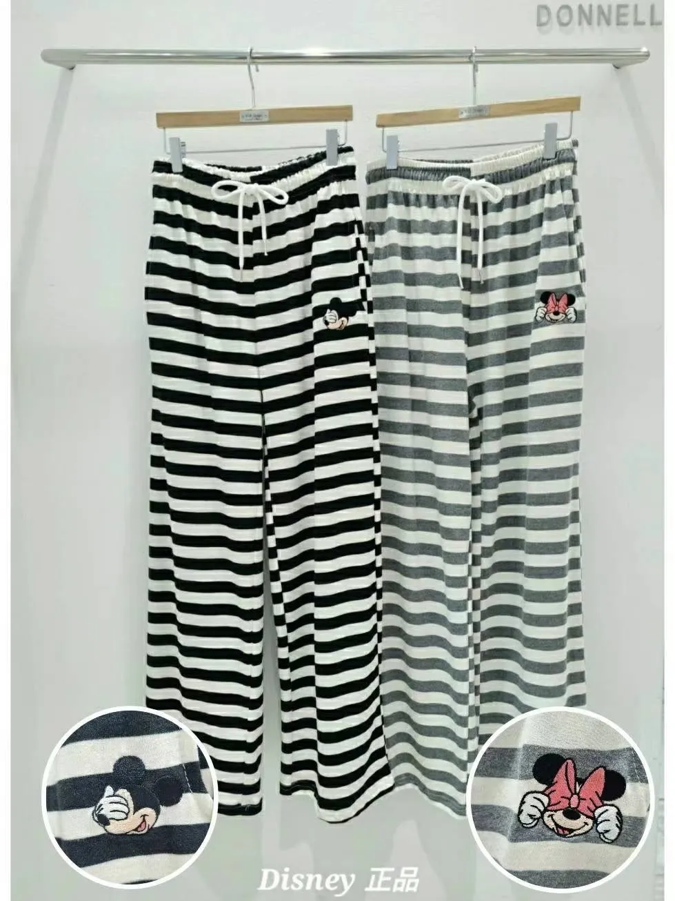 YN046可愛遮眼米奇米妮條紋長褲 灰 黑 官網價$570 線上價$540