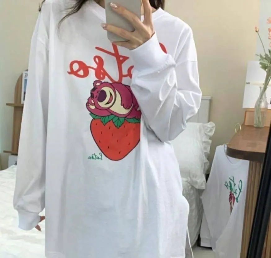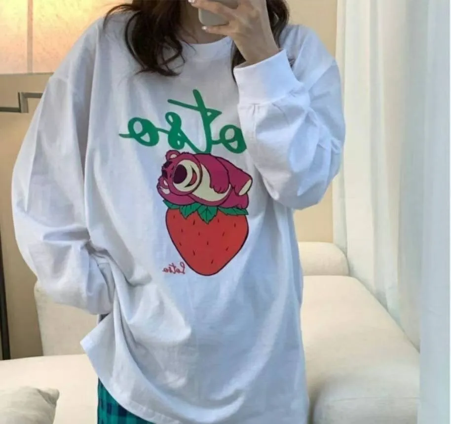 YN053草莓熊抱哥大學T(英文分色) 綠 紅 官網價$540 線上價$510