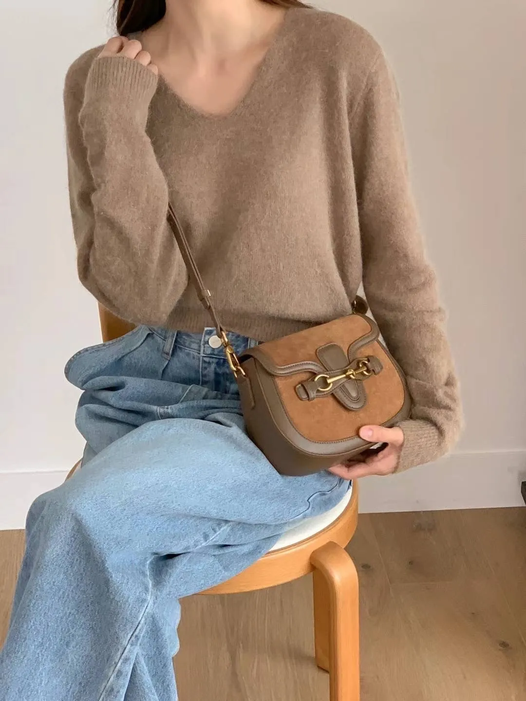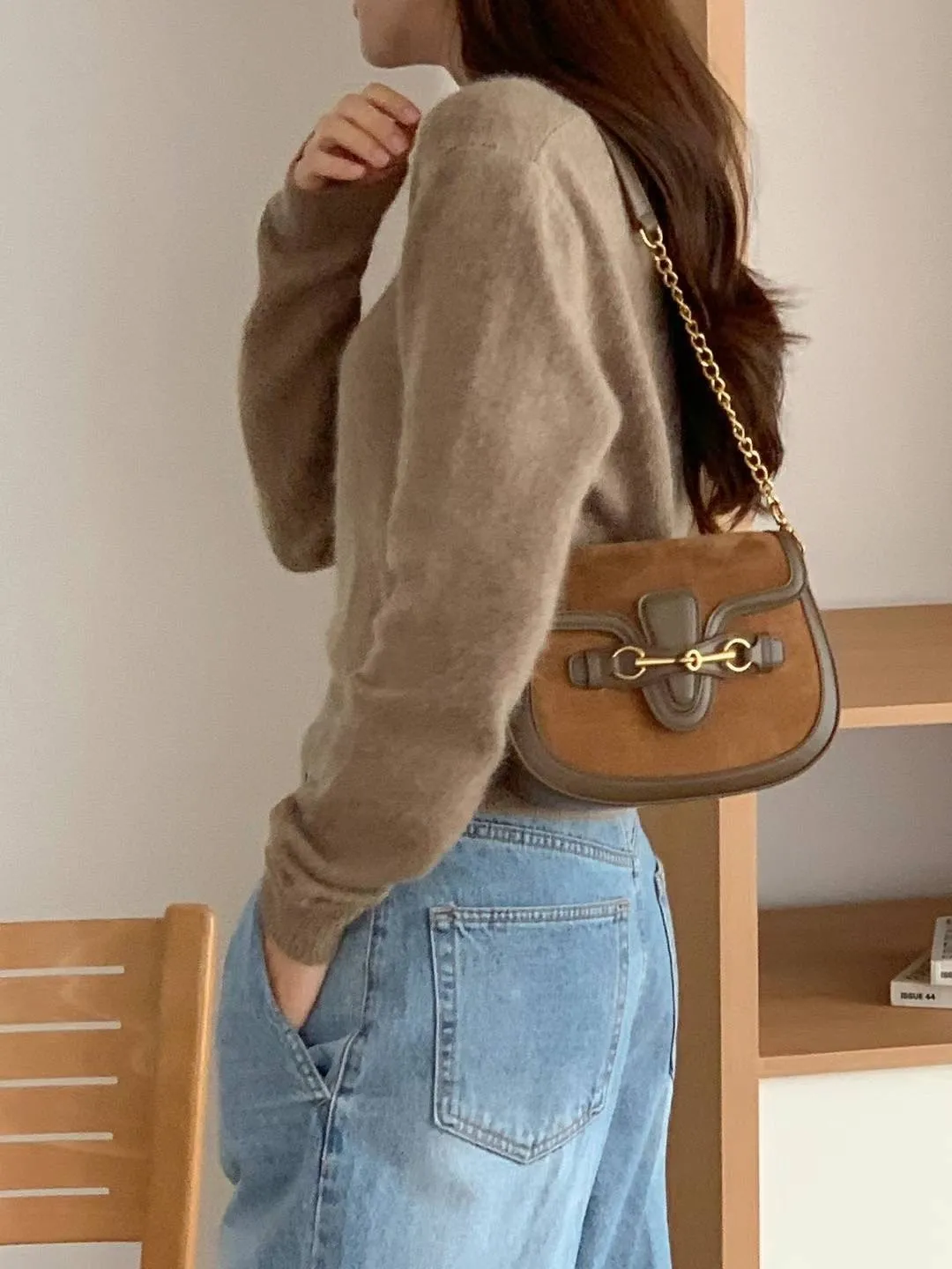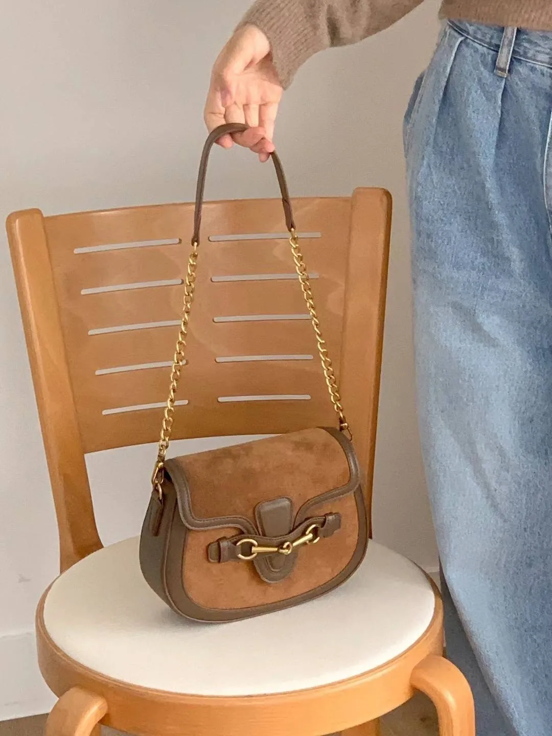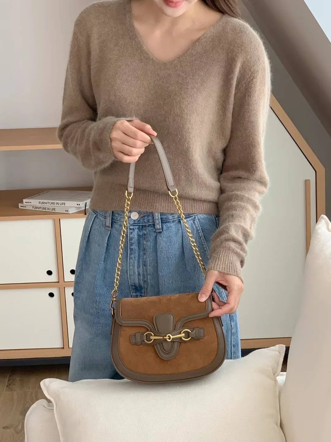 牛皮+金屬鍊 雙背帶 磁吸釦 版型空間佳 拼接雙材質 肩帶可調